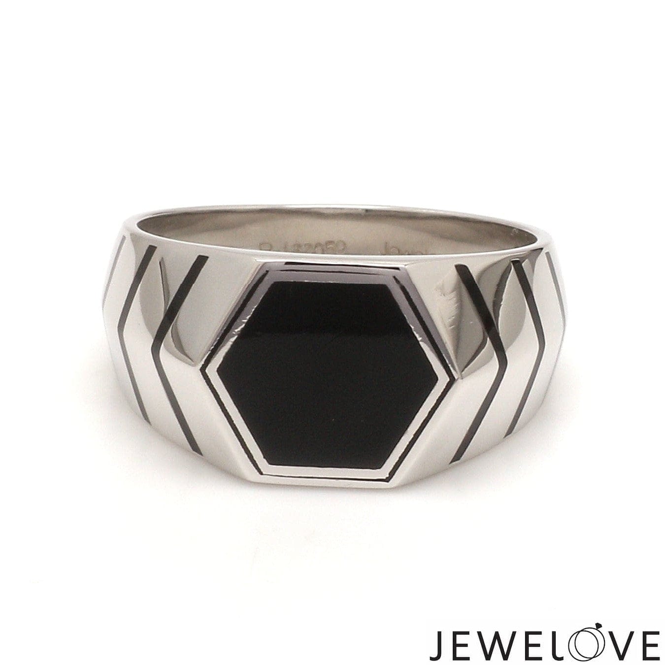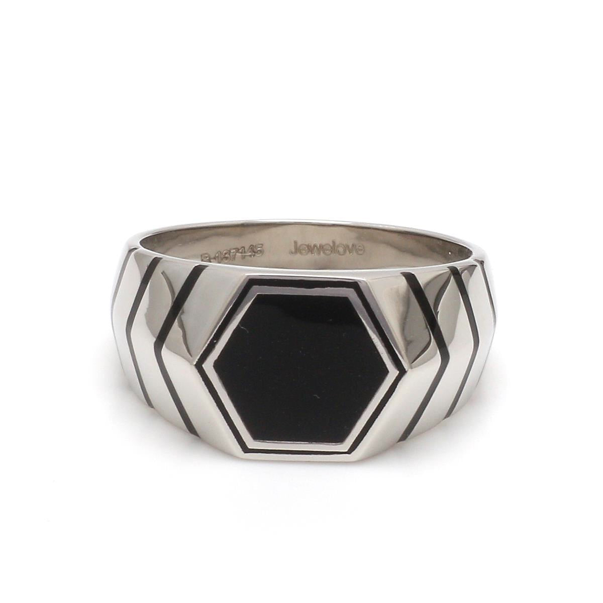 Men of Platinum | Black Enamel Classic Ring for Men JL PT 1396