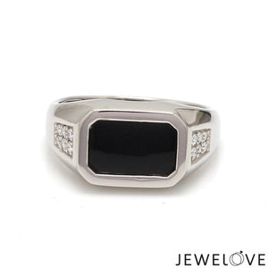 Men of Platinum | Rectangle Black Enamel with Diamond Ring for Men JL PT 1425
