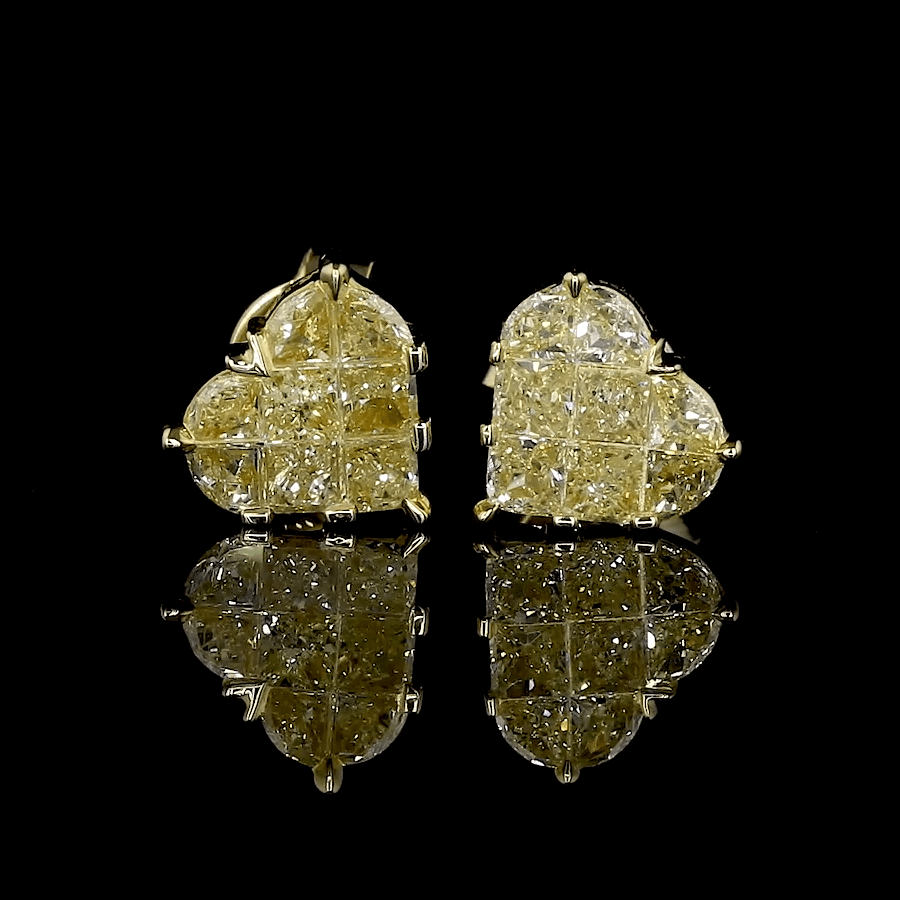 18K Yellow Gold Heart Earrings with Natural Fancy Yellow Diamond JL AU E 107