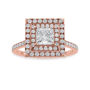 70-Pointer Princess Cut Solitaire Double Halo Diamond Shank 18K Rose Gold Ring JL AU 1301R-B