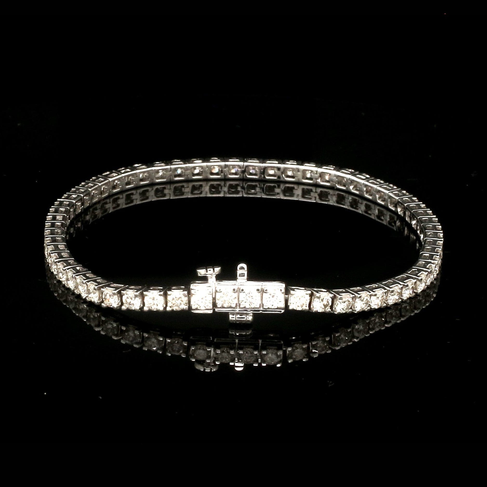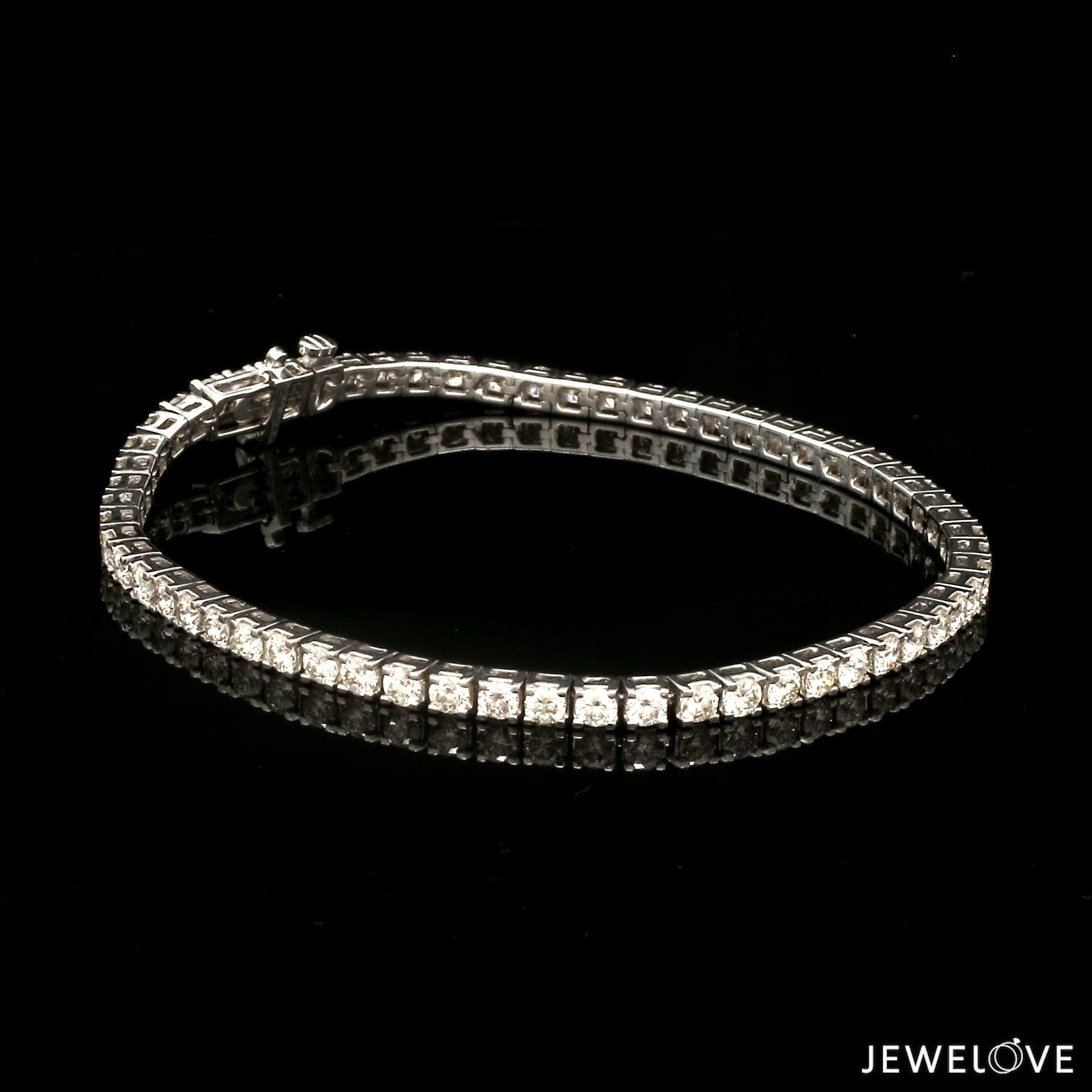 7 carat diamonds set in a classic platinum tennis bracelet with single line lab grown diamonds by Jewelove.