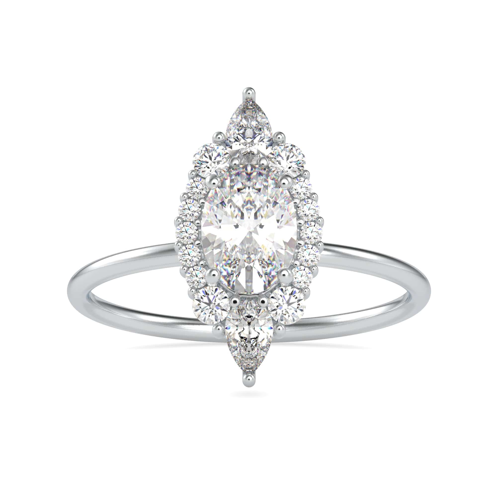 50-Pointer Oval Cut Solitaire with Pear & Brilliant Round Cut Diamond Designer Platinum Ring JL PT 0665-A