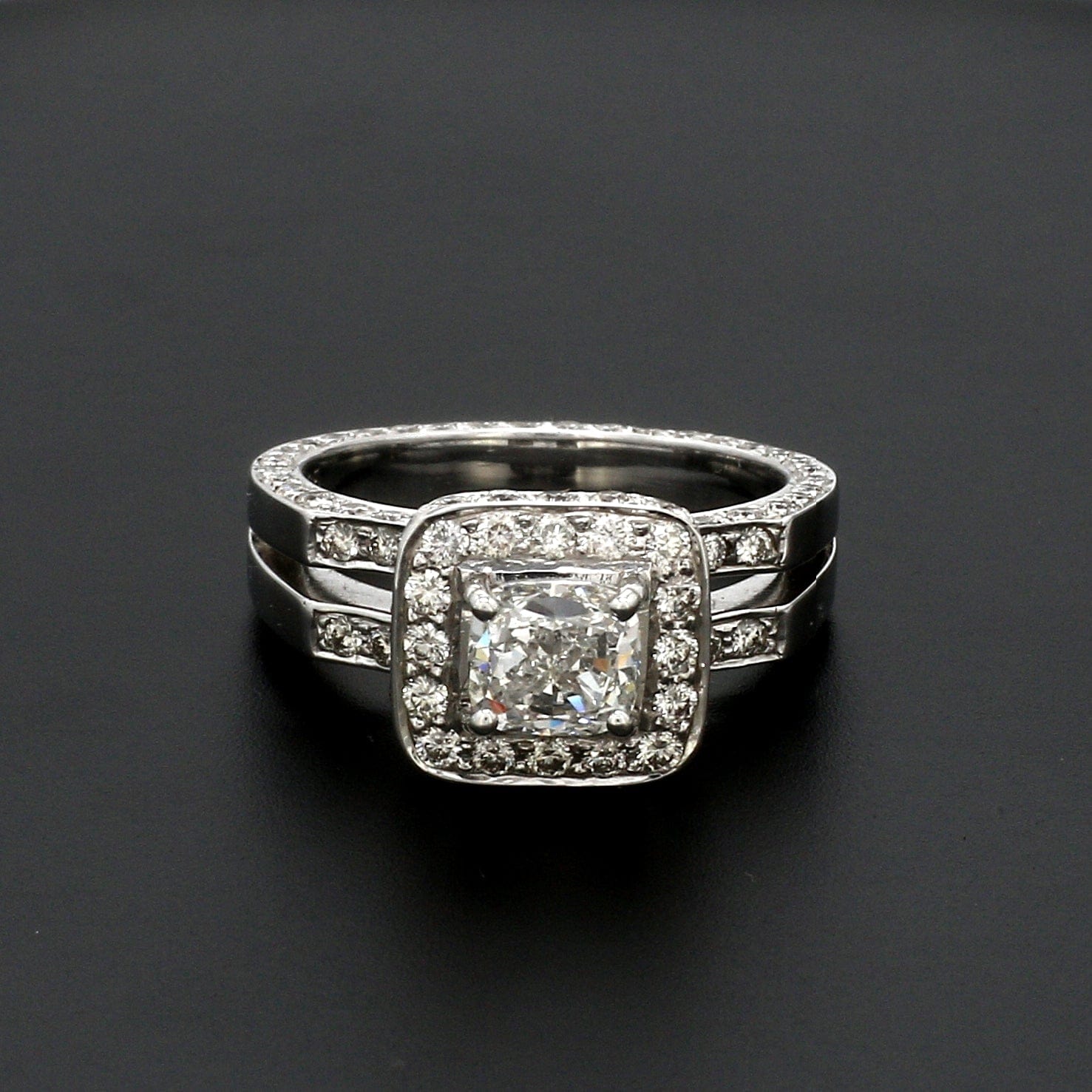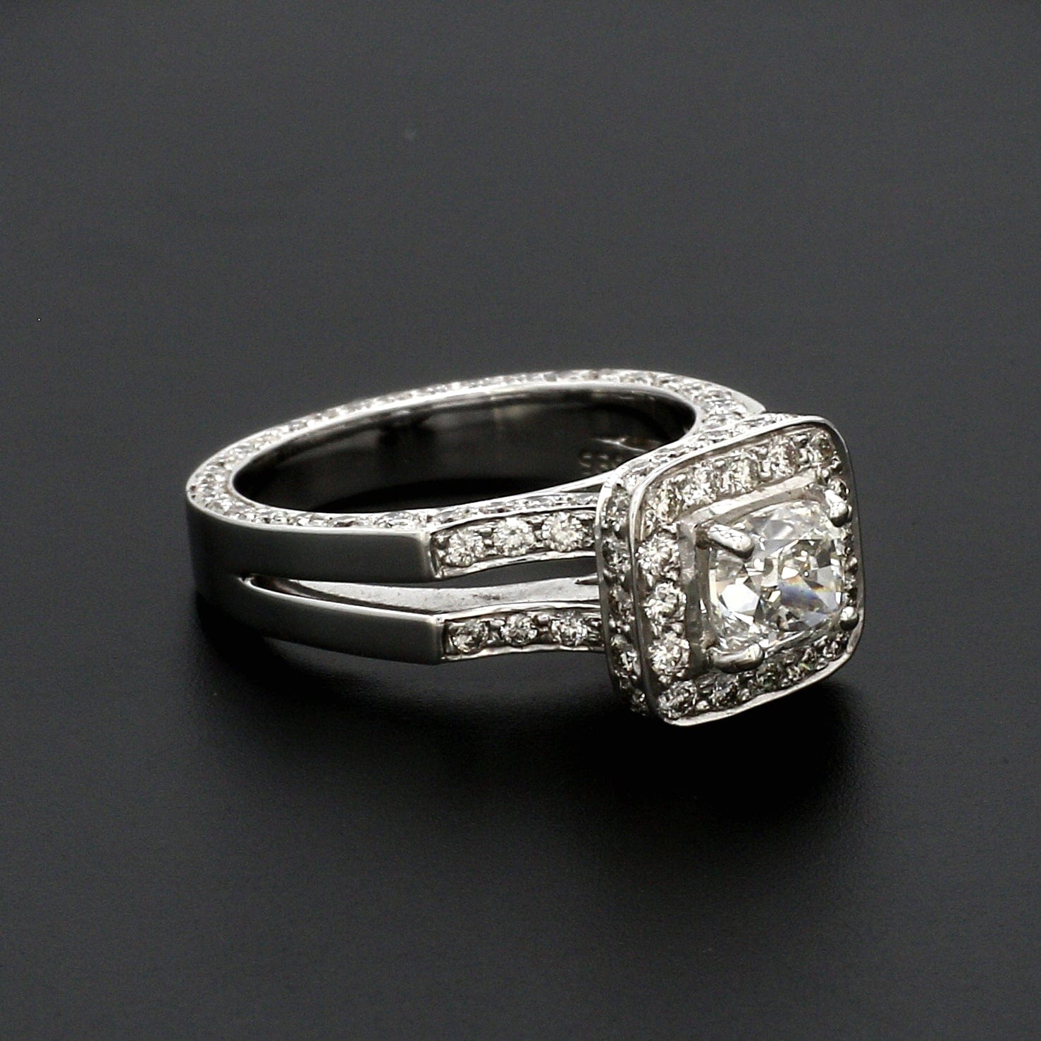 14K White Gold Cushion Cut Solitaire Ring with Halo Accents Diamonds JL AU 1212