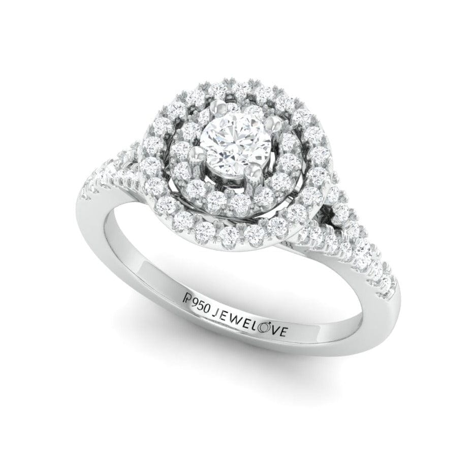 Ready to Ship - Ring Size 14, 25-Pointer Double Halo Platinum Solitaire Engagement Ring for Women JL PT 978