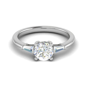 0.70 cts. Platinum Solitaire Diamond Ring with Baguette Accents JL PT R3 RD 118