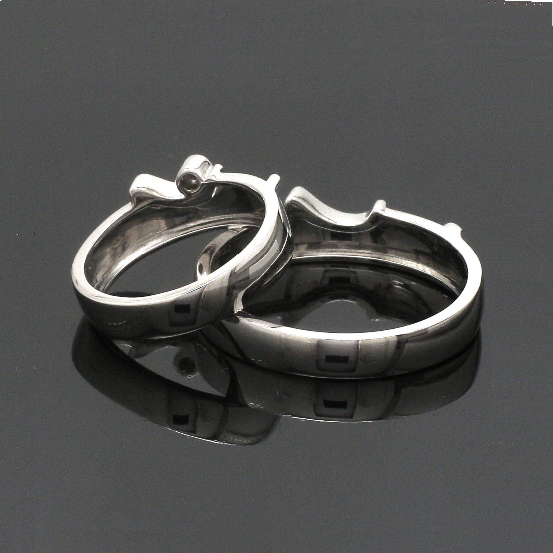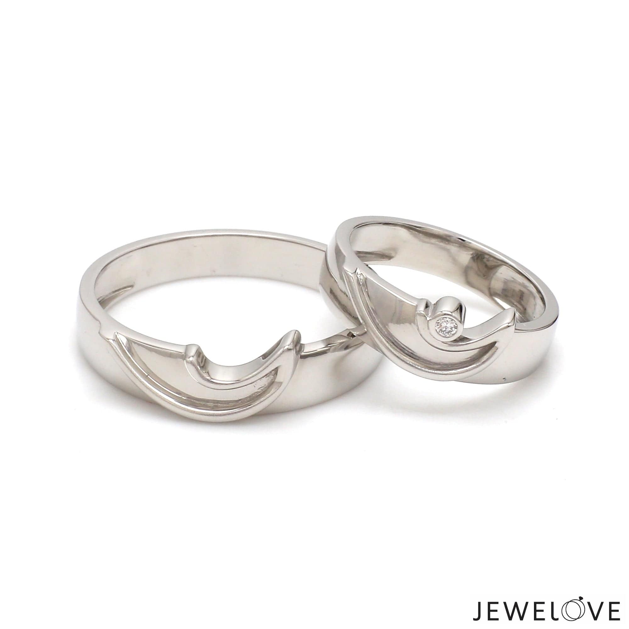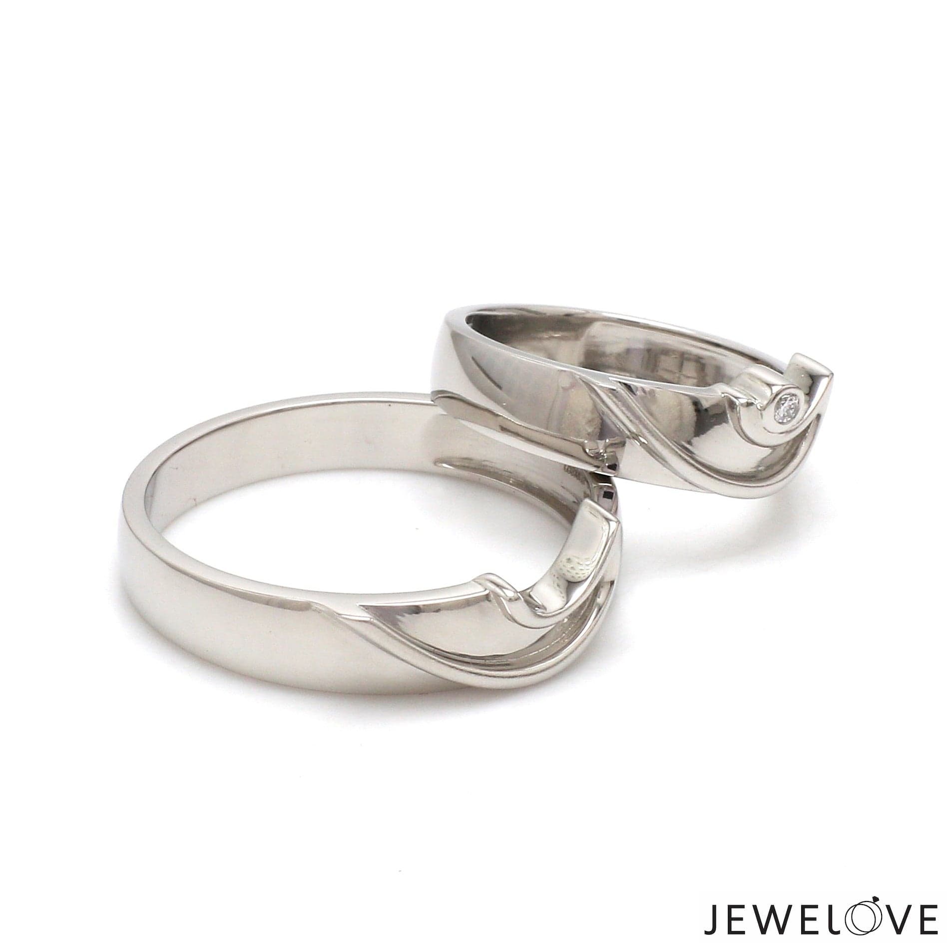 The female band has a single diamond embedded in Platinum while the male band is a plain Platinum without diamond.