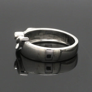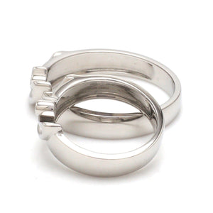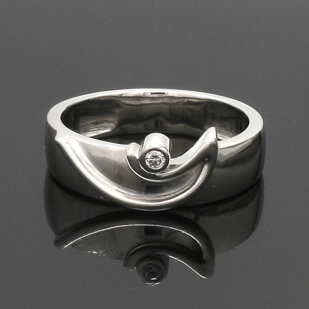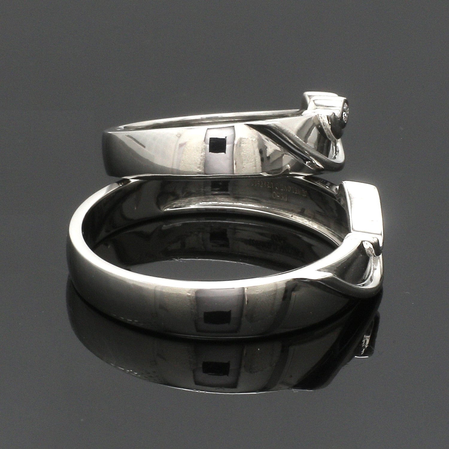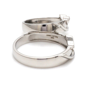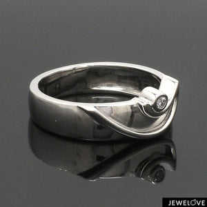 The female band has a single diamond embedded in Platinum while the male band is a plain Platinum without diamond.