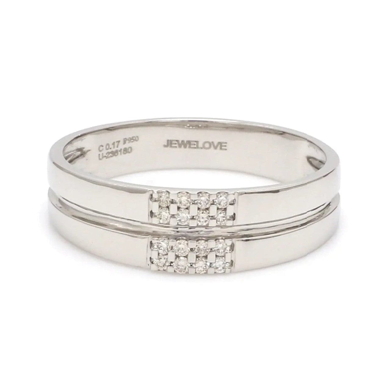 The female band has 8 diamonds embedded in hi-polish Platinum while the male band has 16 diamonds embedded in hi-polish Platinum, with a Platinum line in between the 2 sets of 8 diamonds each.