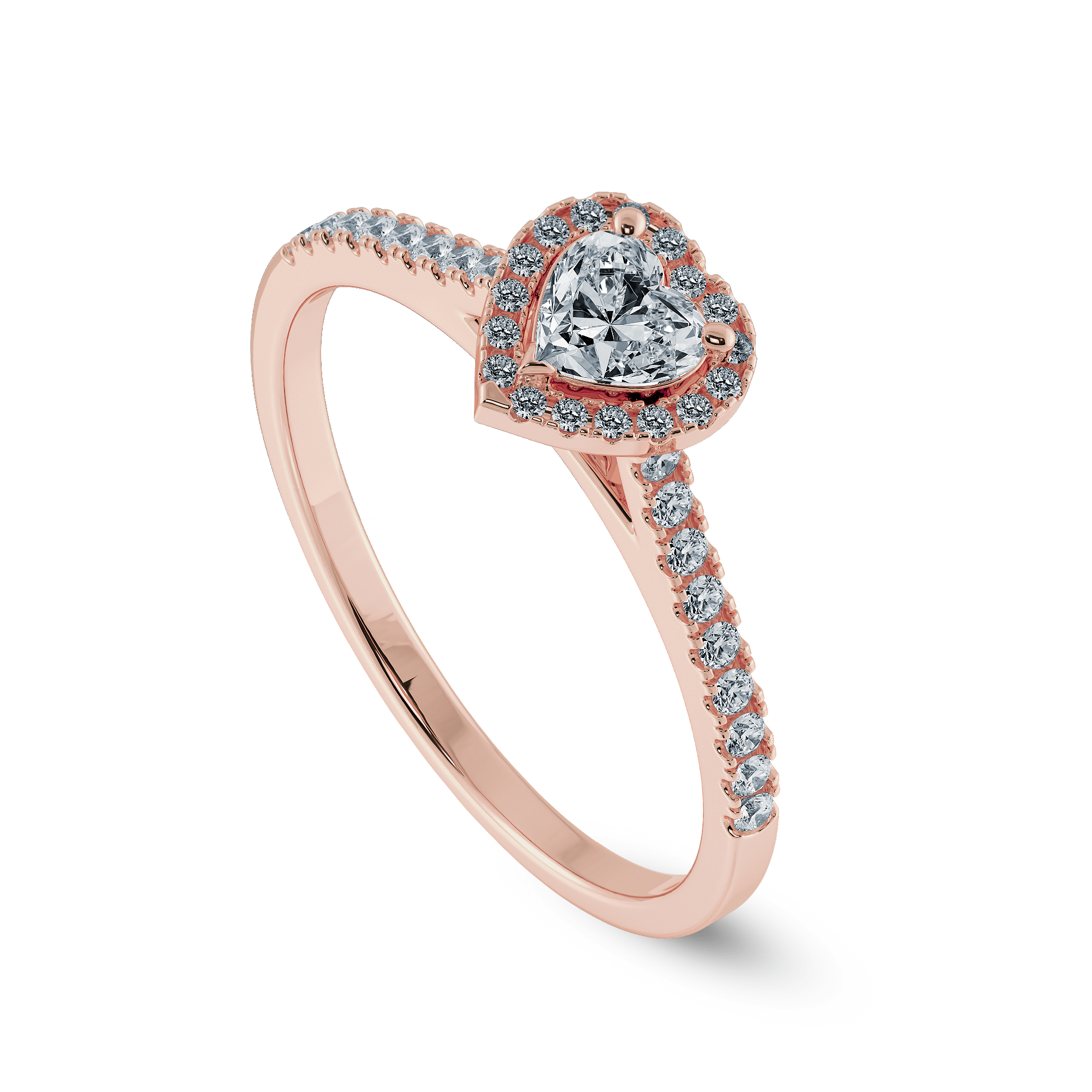 0.30cts. Heart Cut Solitaire Halo Diamond Shank 18K Rose Gold Ring JL AU 1198R