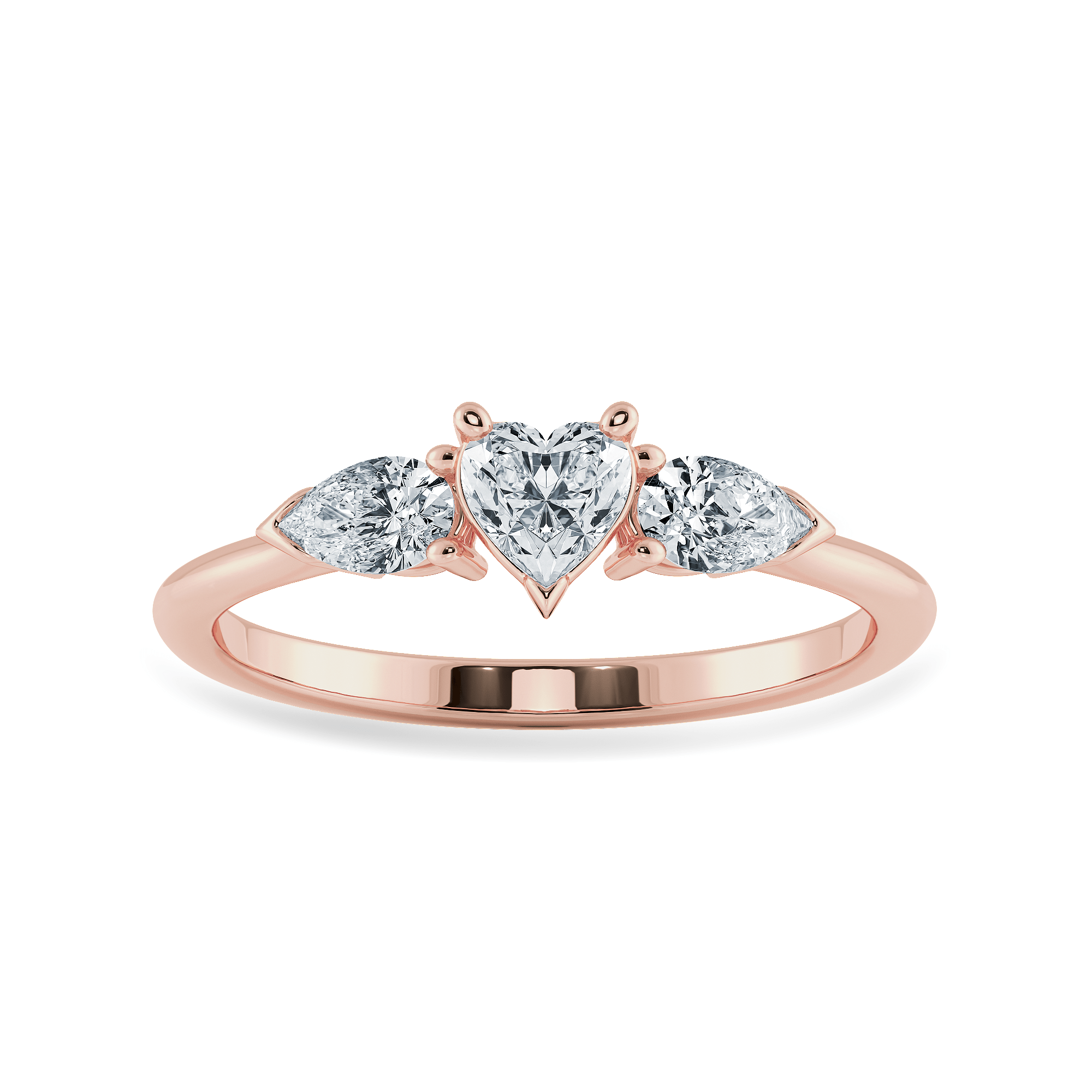 0.30cts. Heart Cut Solitaire with Pear Cut Diamond Accents 18K Rose Gold Ring JL AU 1205R