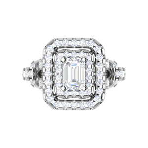 0.50cts. Emerald Cut Solitaire Halo Diamond Shank 18K Rose Gold Ring JL AU 1197R-A