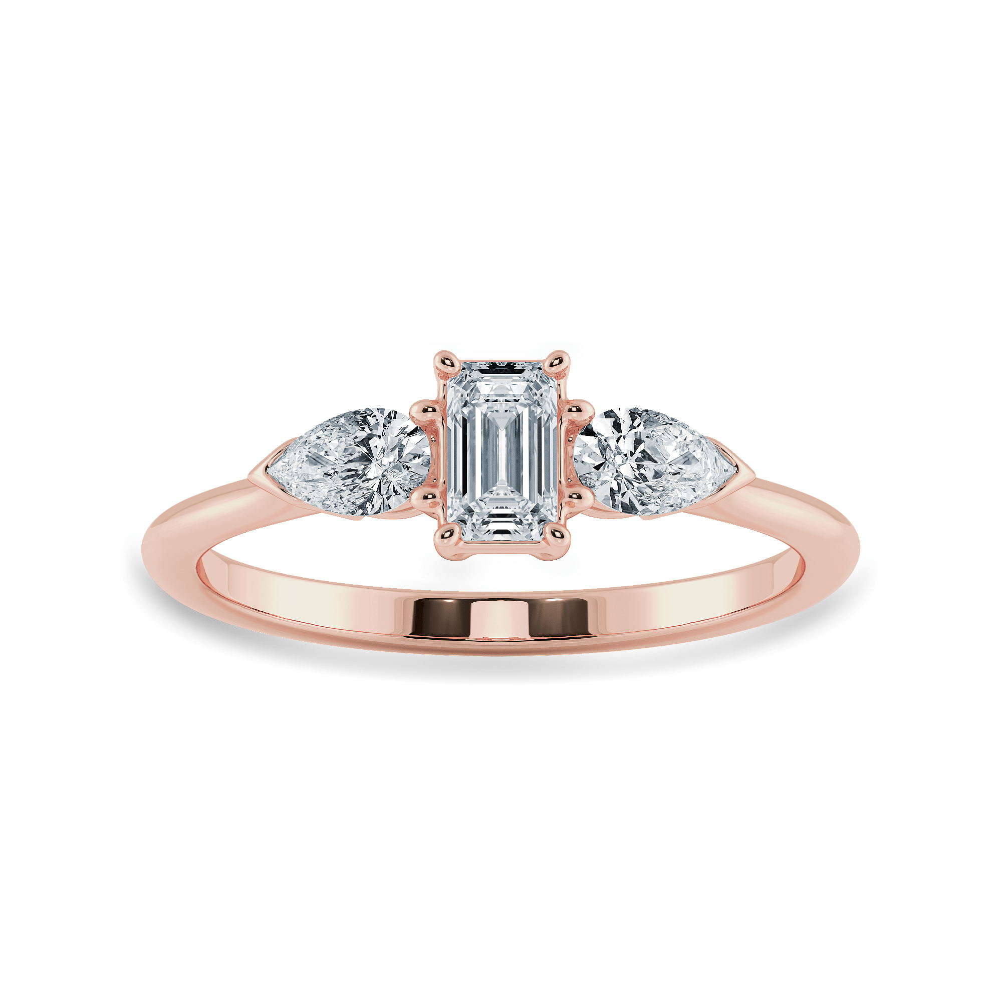 0.30cts. Emerald Cut Solitaire with Pear Cut Diamond Accents 18K Rose Gold Solitaire Ring JL AU 1204R