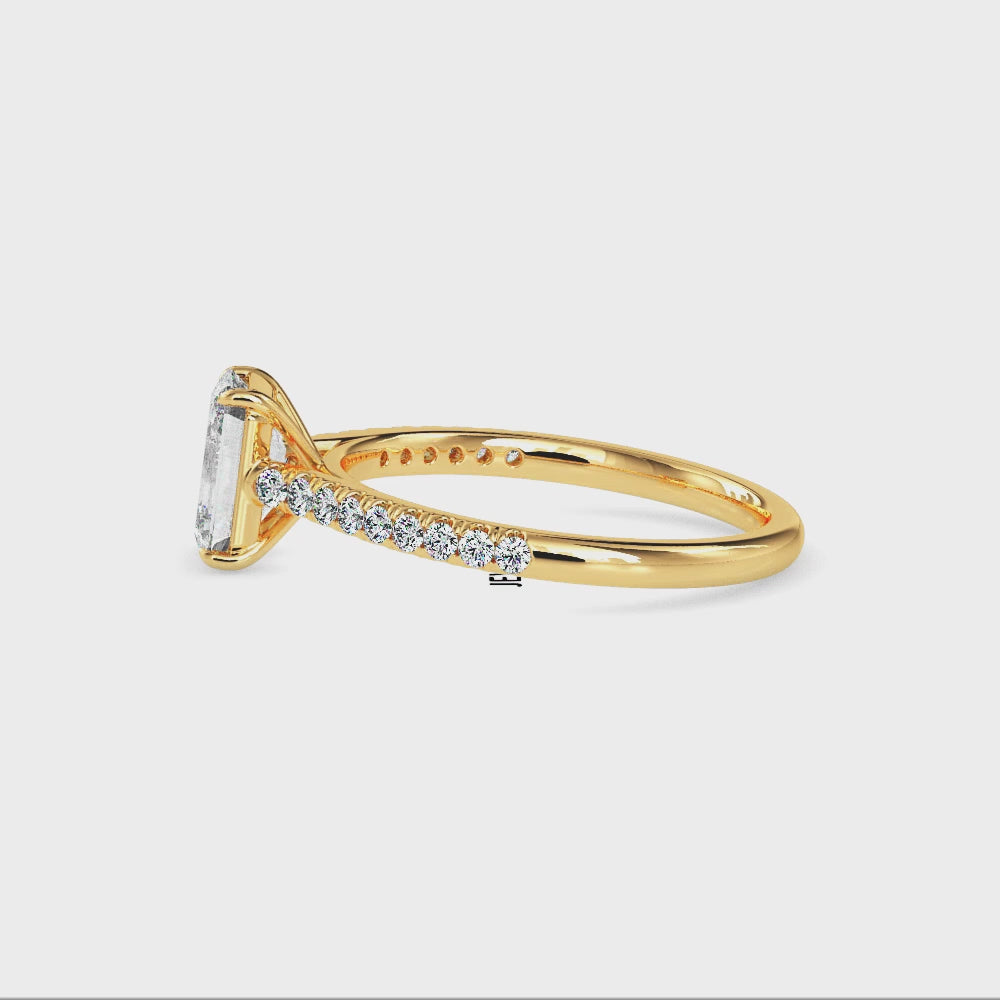 70-Pointer Emerald Cut Solitaire Diamond Shank 18K Yellow Gold Ring JL AU 19015Y-B