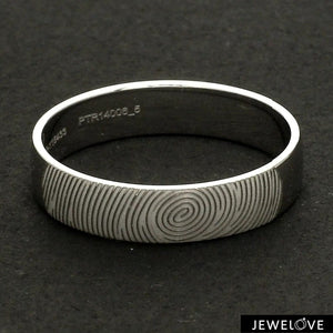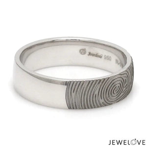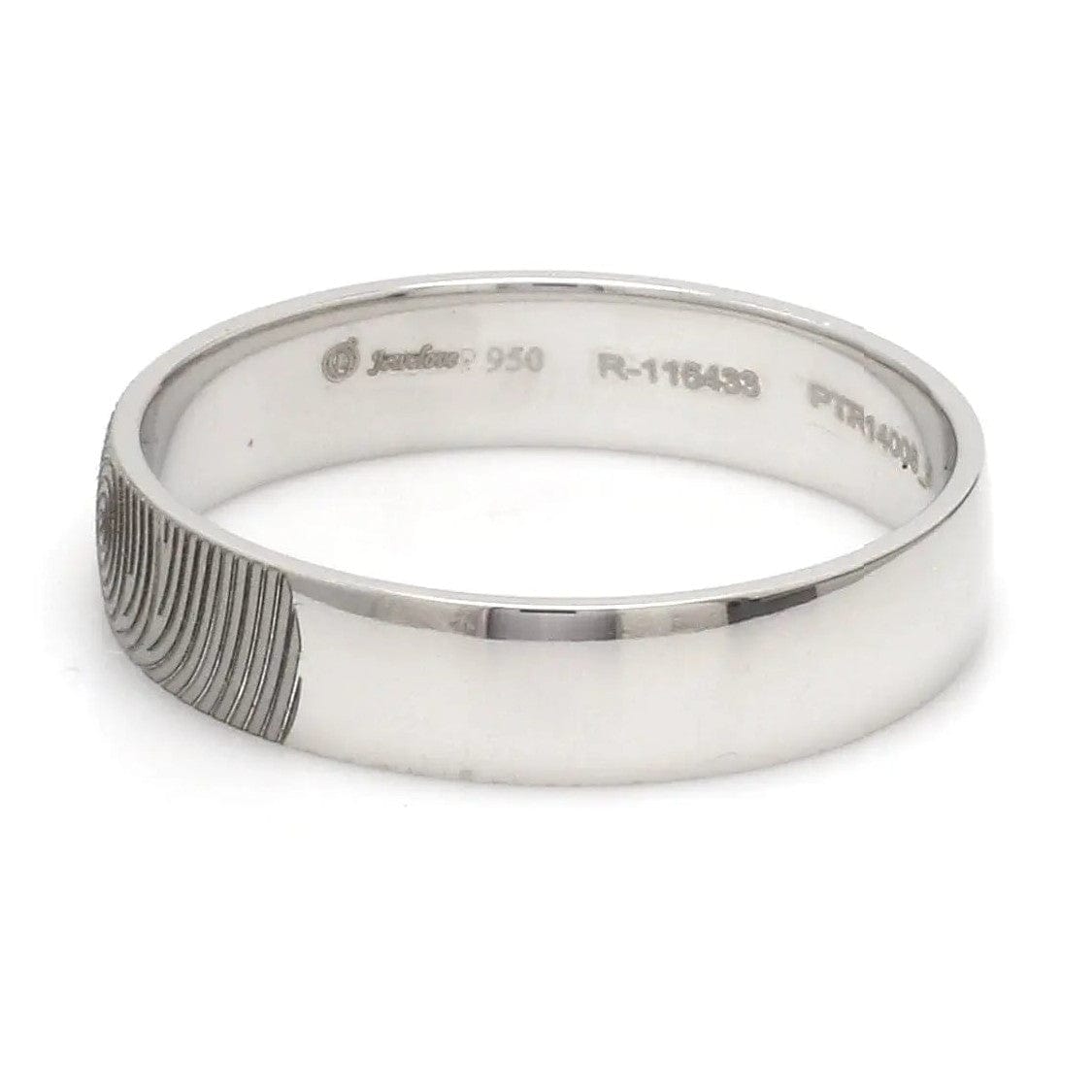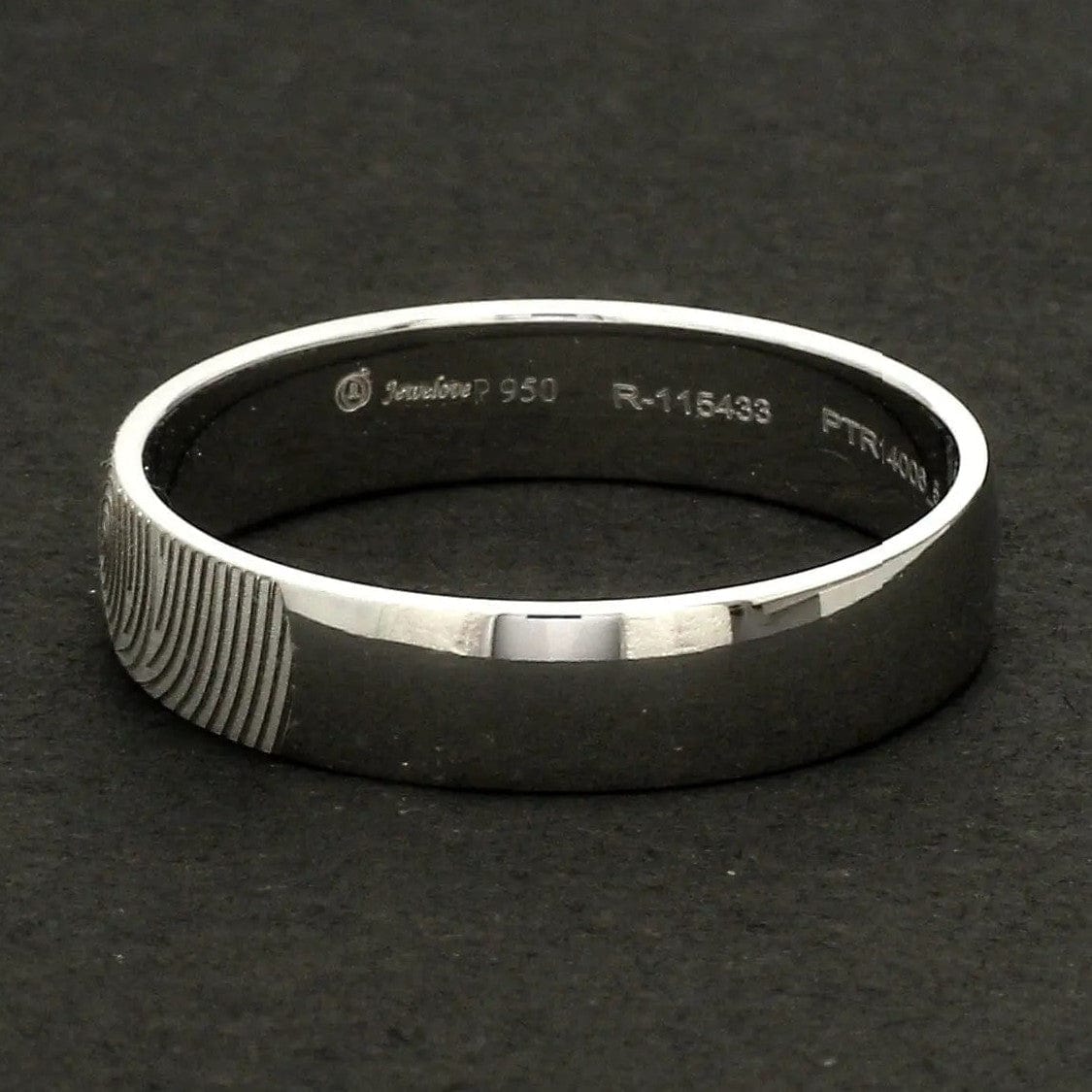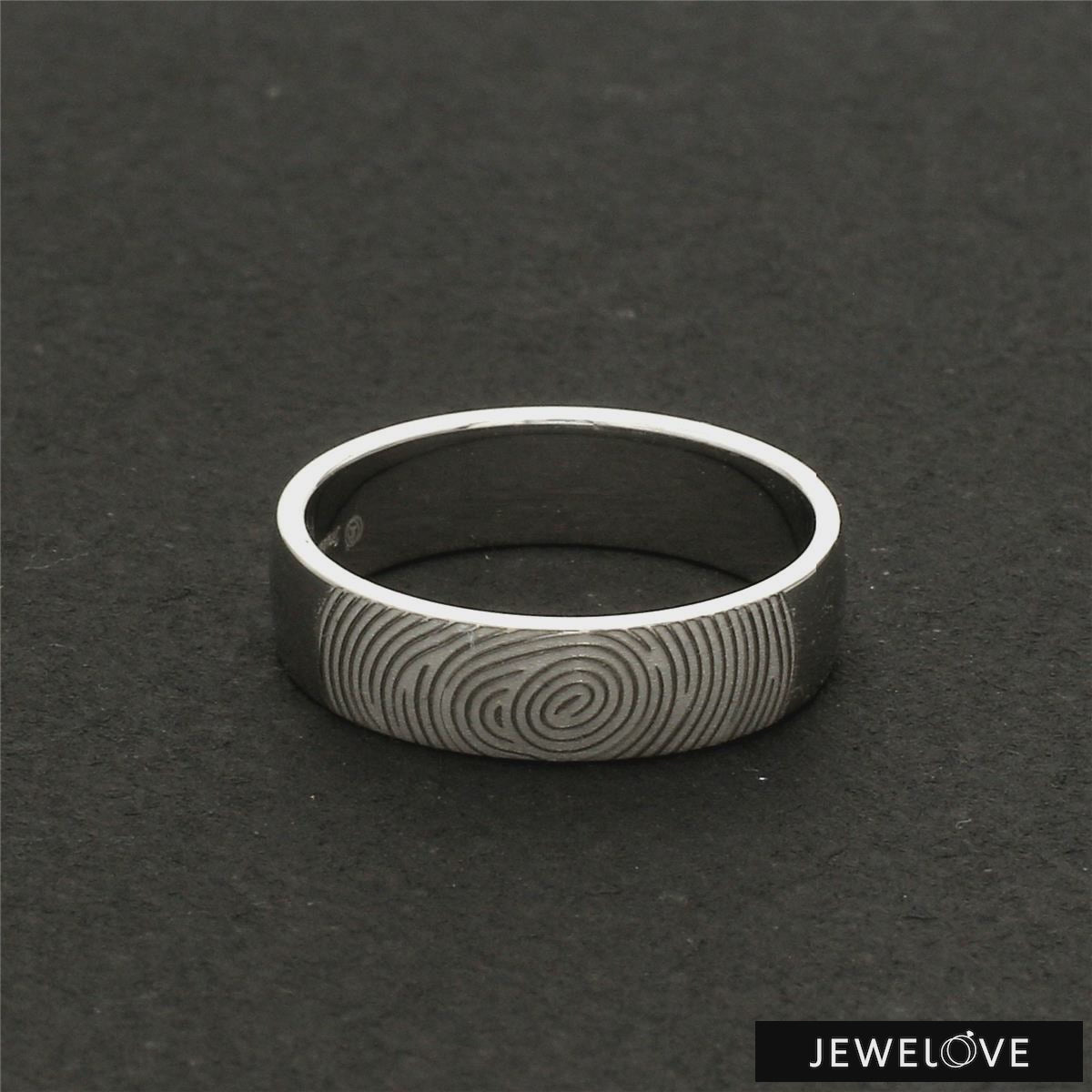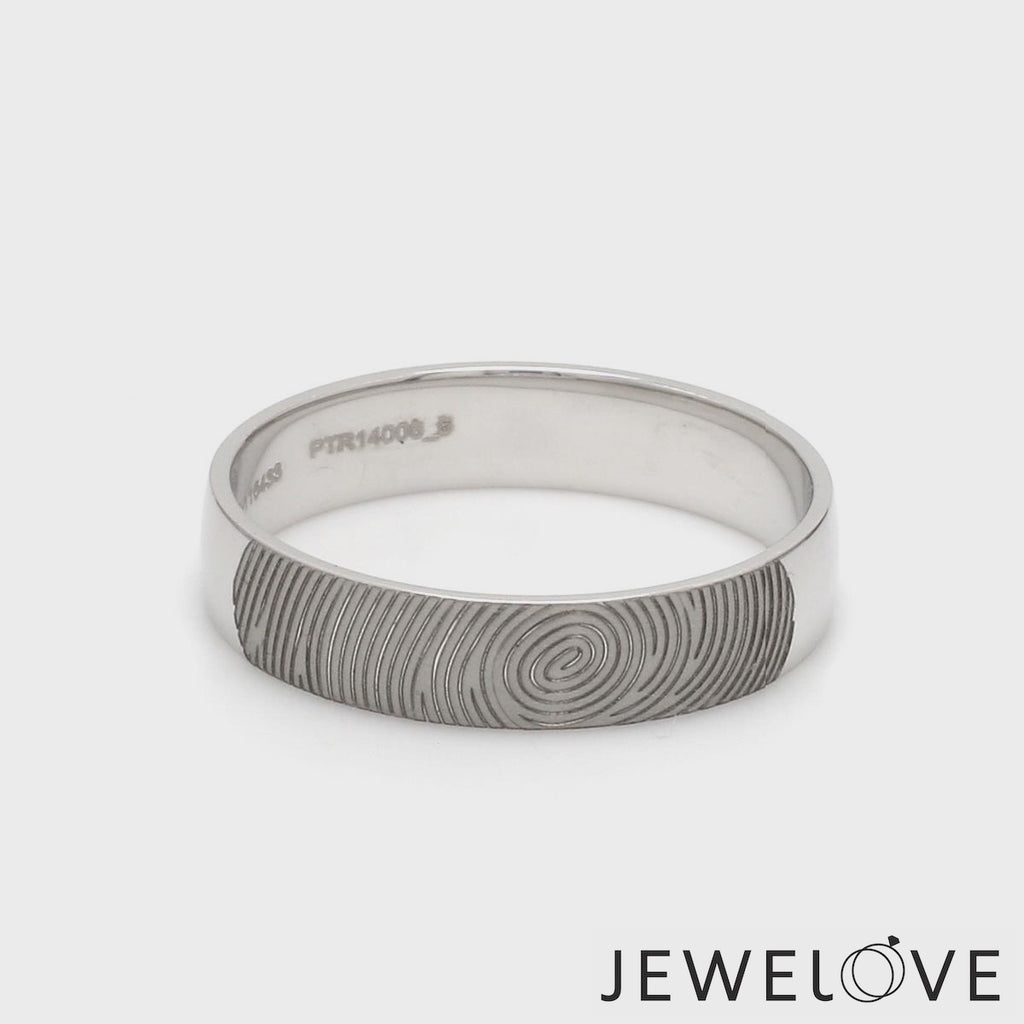 Beautiful customised platinum ring with fingerprint engraved on the band. Crafted in Pt 950 & custom made for you, this is the most unique gift for your beloved.