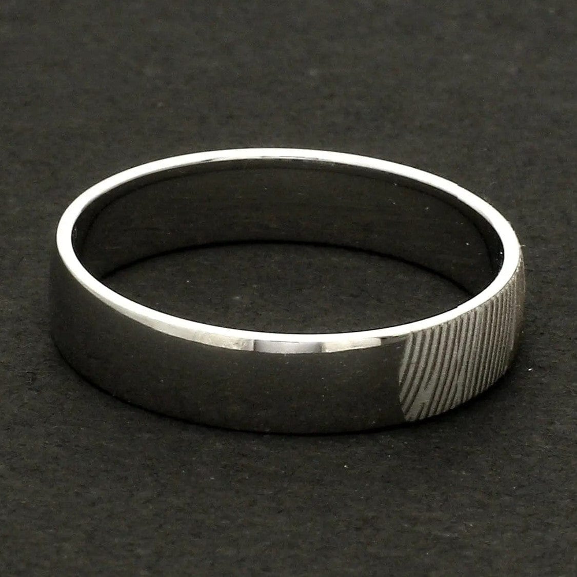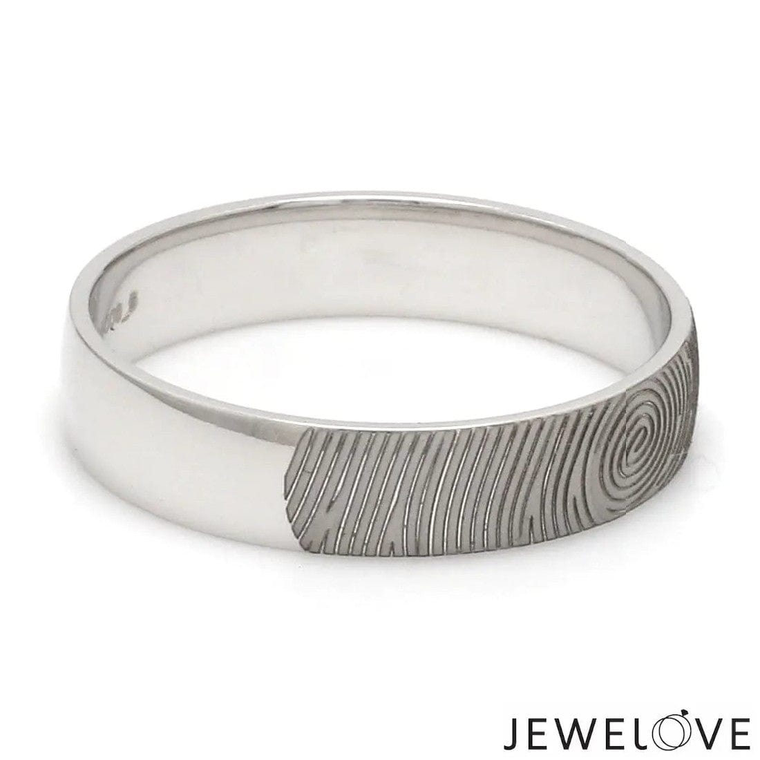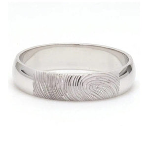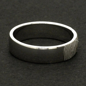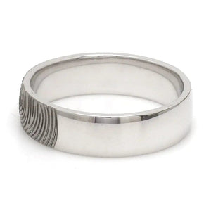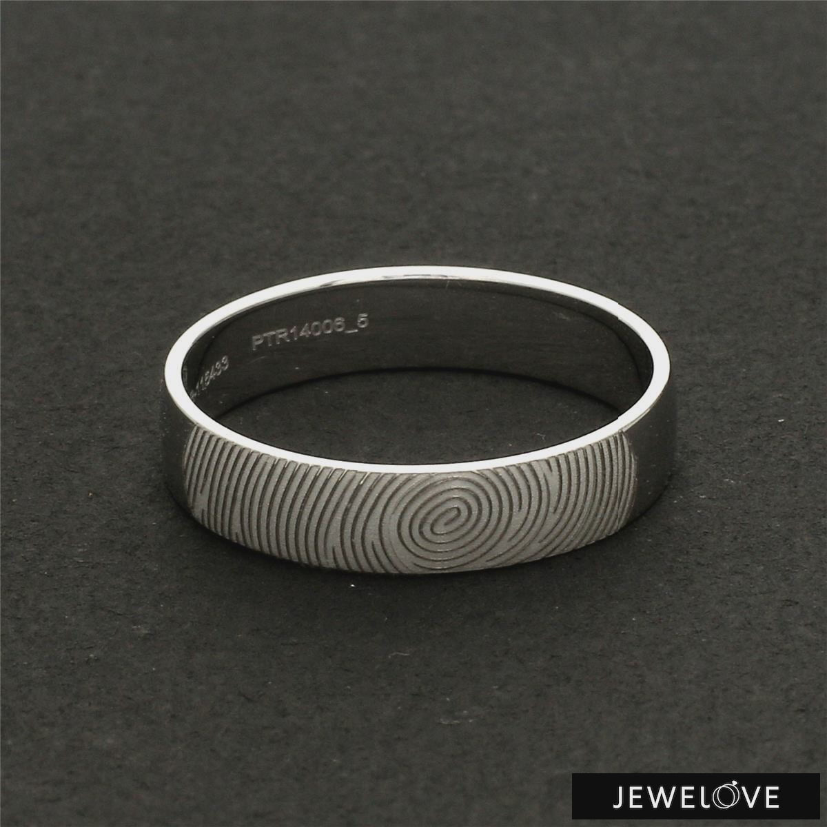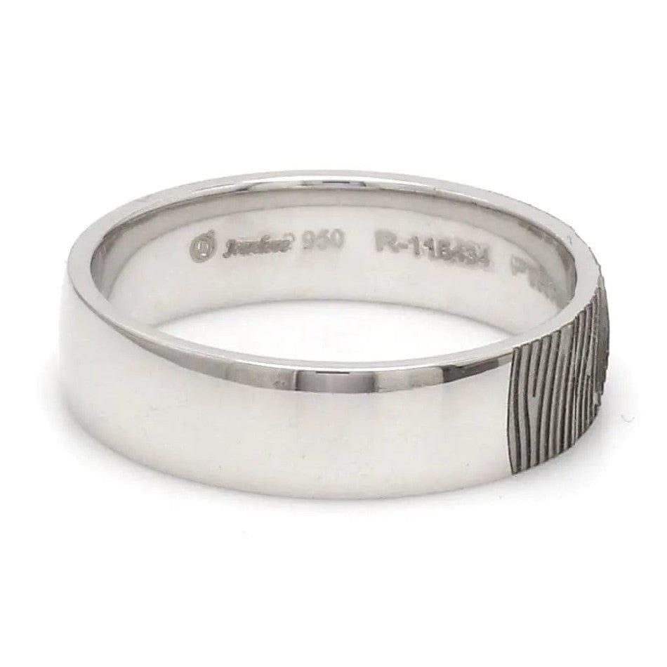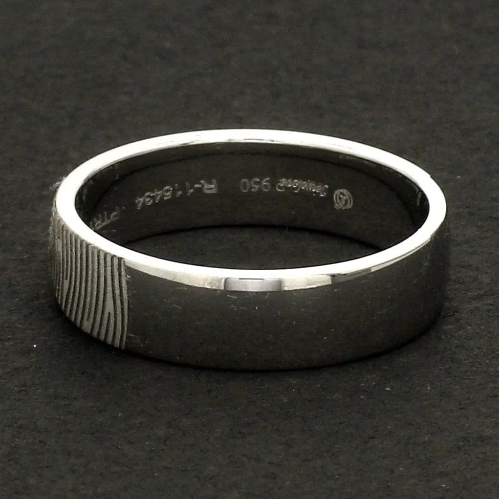 Beautiful customised platinum ring with fingerprint engraved on the band. Crafted in Pt 950 & custom made for you, this is the most unique gift for your beloved.