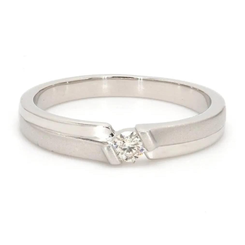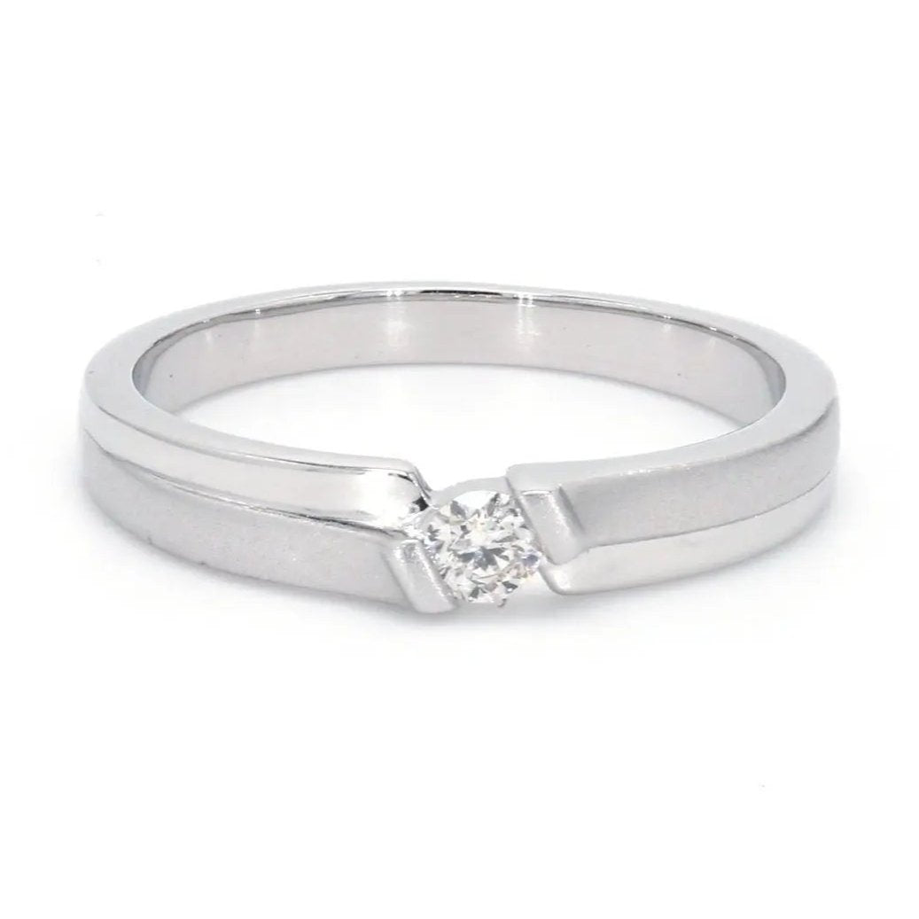This pair has matte finish majorly with hi-polish on the sides. Each of the rings has a single diamond.