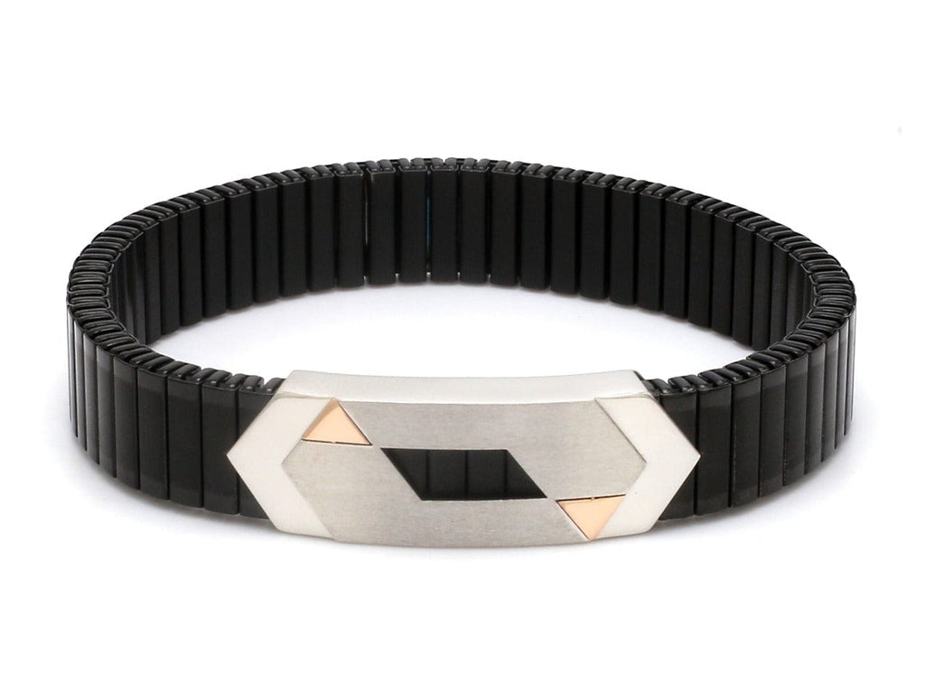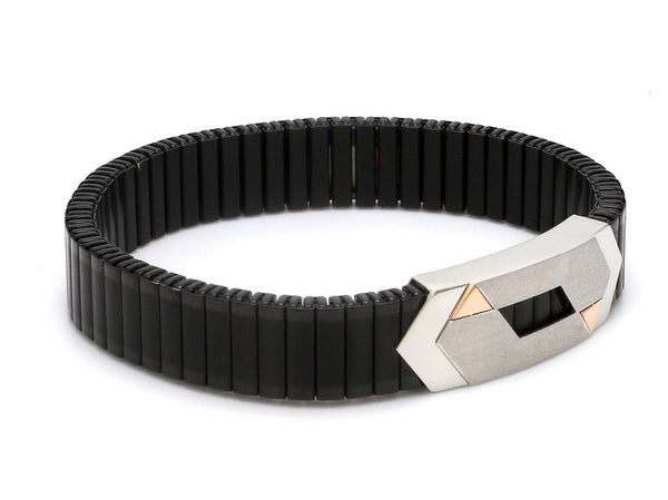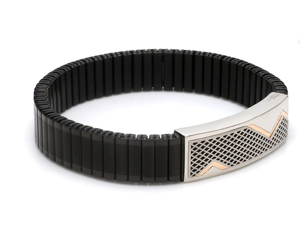 Platinum & Rose Gold Black Band Bracelet for Men - Flexible JL PTB 1089