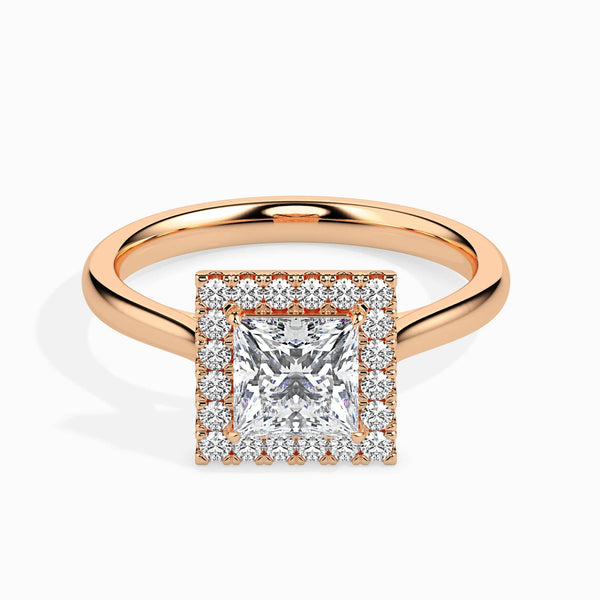 30-Pointer Princess Cut Solitaire Square Halo Diamond 18K Rose Gold Ring JL AU 19022R