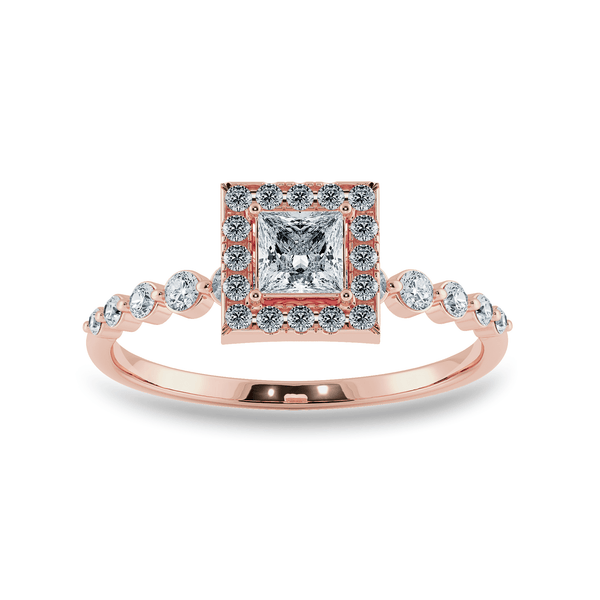 0.20cts. Princess Cut Solitaire Halo Diamond Accents 18K Rose Gold Ring JL AU 2003R-C