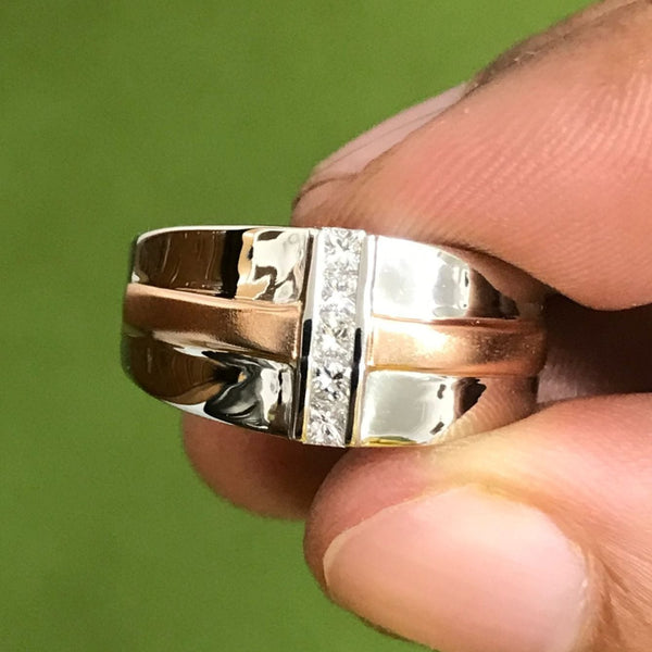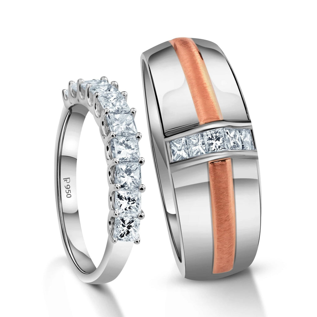 Platinum & Rose Gold Engagement Ring with Princess Cut Solitaire SJ PTO 288