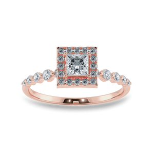 0.70cts. Princess Cut Solitaire Halo Diamond Accents 18K Rose Gold Ring JL AU 2003R-B
