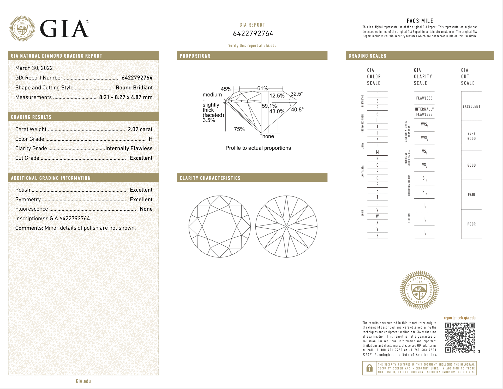 2.02 cts. H IF GIA Graded Diamond Solitaire