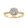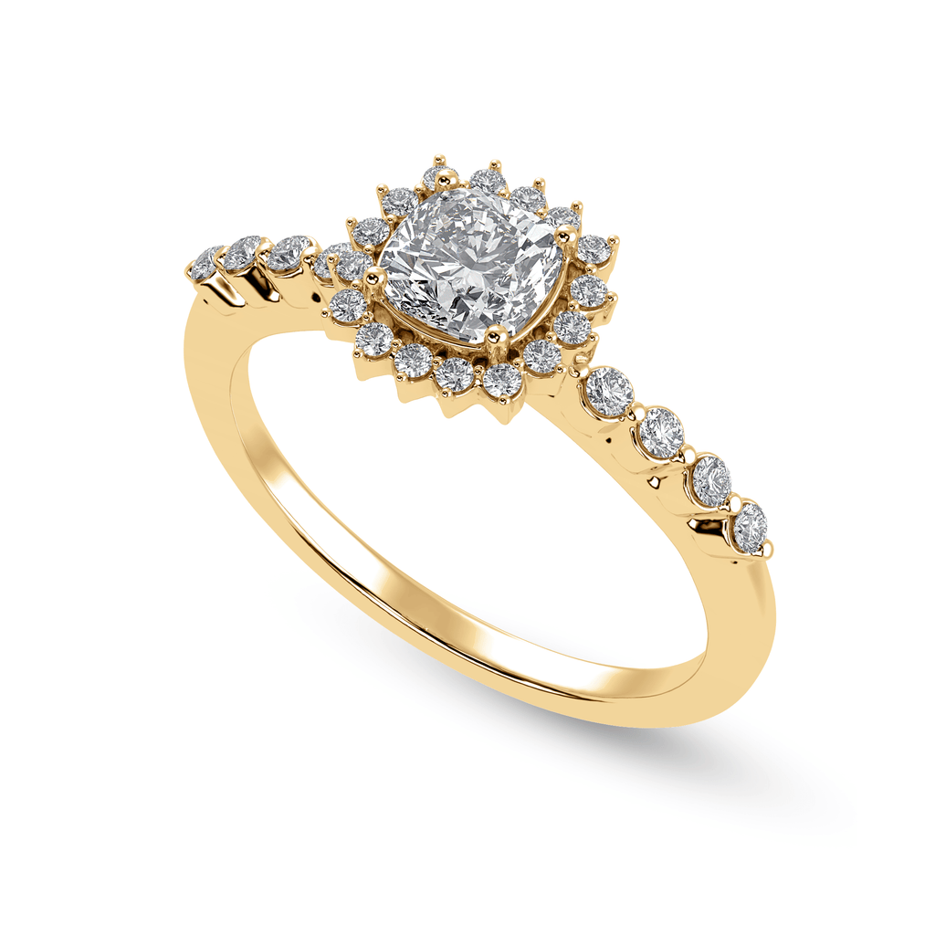70-Pointer Cushion Cut Solitaire Halo Diamond Shank 18K Yellow Gold Ring JL AU 1249Y-B