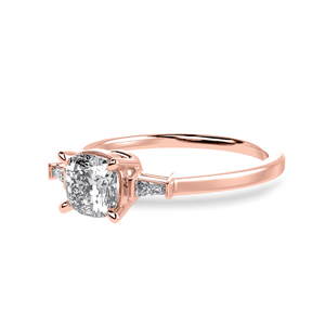 70-Pointer Cushion Cut Solitaire with Baguette Diamond Accents 18K Rose Gold Ring JL AU 1223R-B
