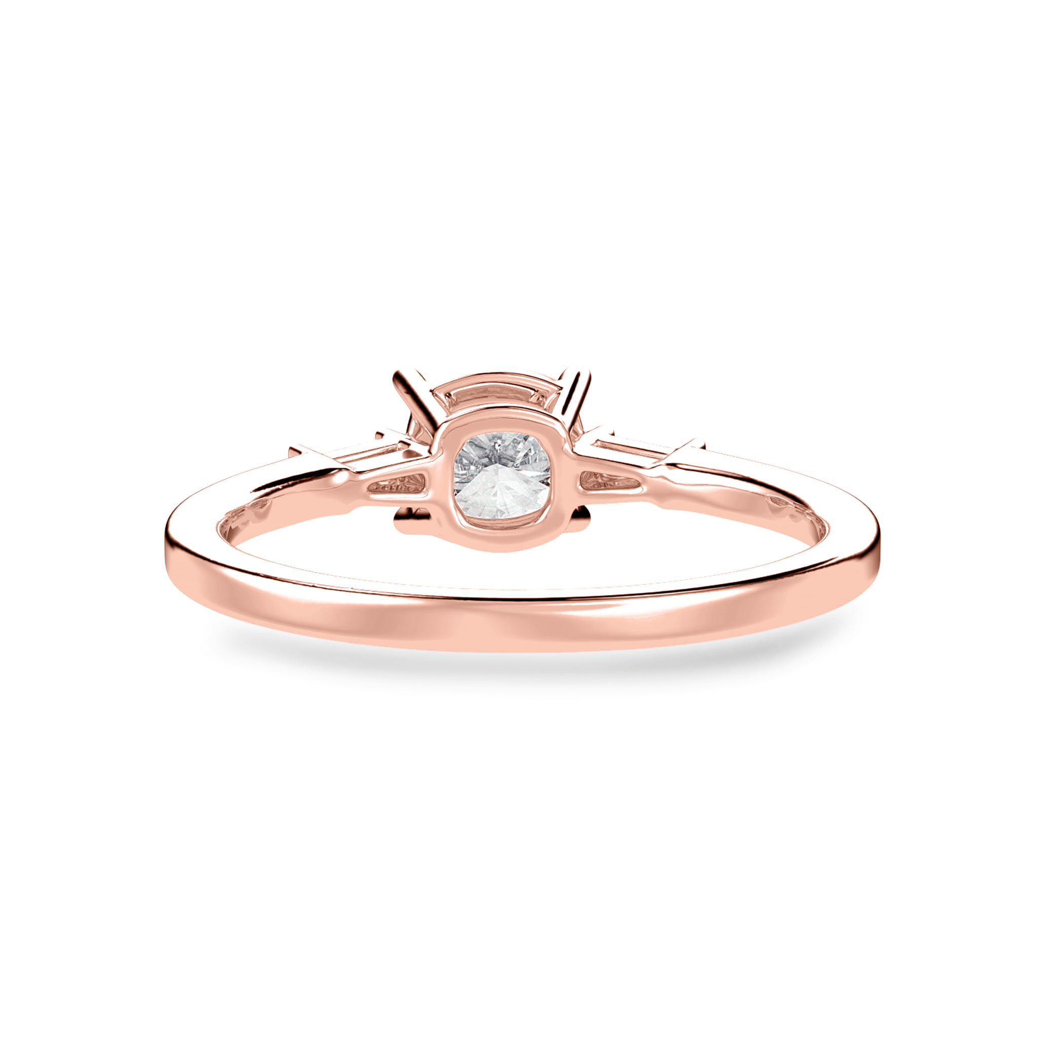 18K Rose Gold Cushion Cut Solitaire with Baguette Diamond Ring.