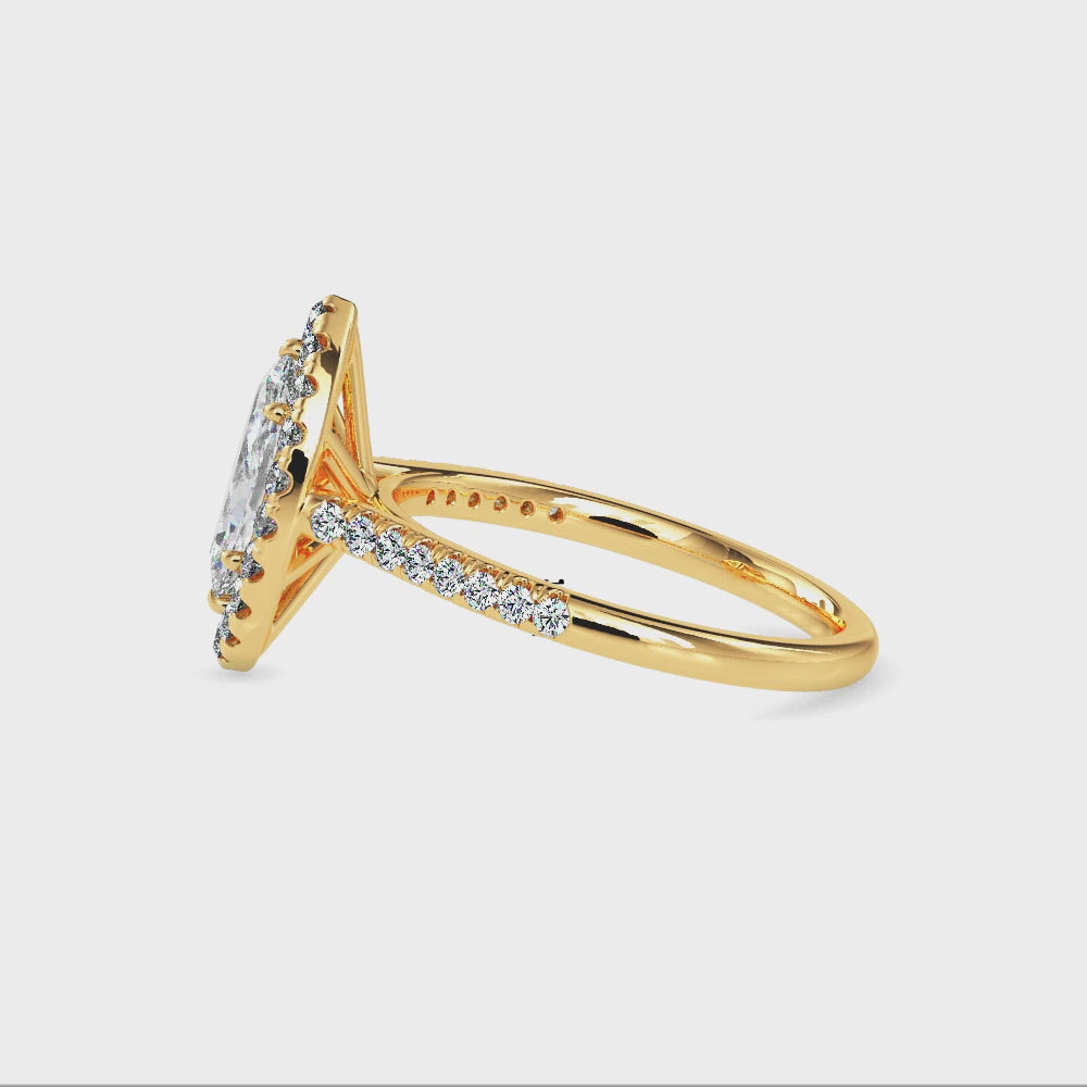 70-Pointer Marquise Cut Solitaire Halo Diamond Shank 18K Yellow Gold Ring JL AU 19039Y-B
