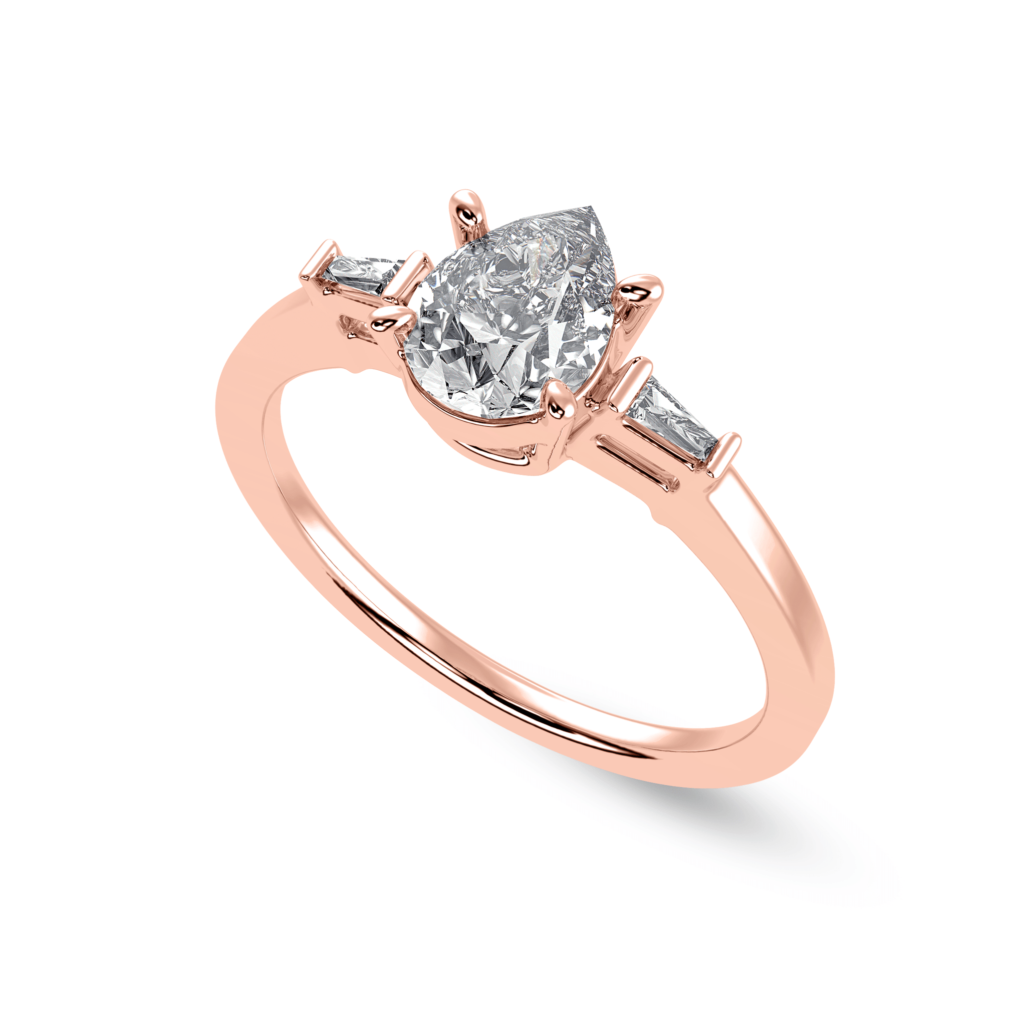 70-Pointer Pear Cut Solitaire with Baguette Diamond Accents 18K Rose Gold Ring JL AU 1227R-B