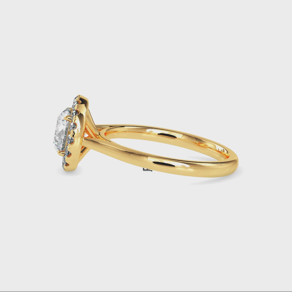 70-Pointer Solitaire Halo Diamond Shank 18K Yellow Gold Ring JL AU 19021Y-B