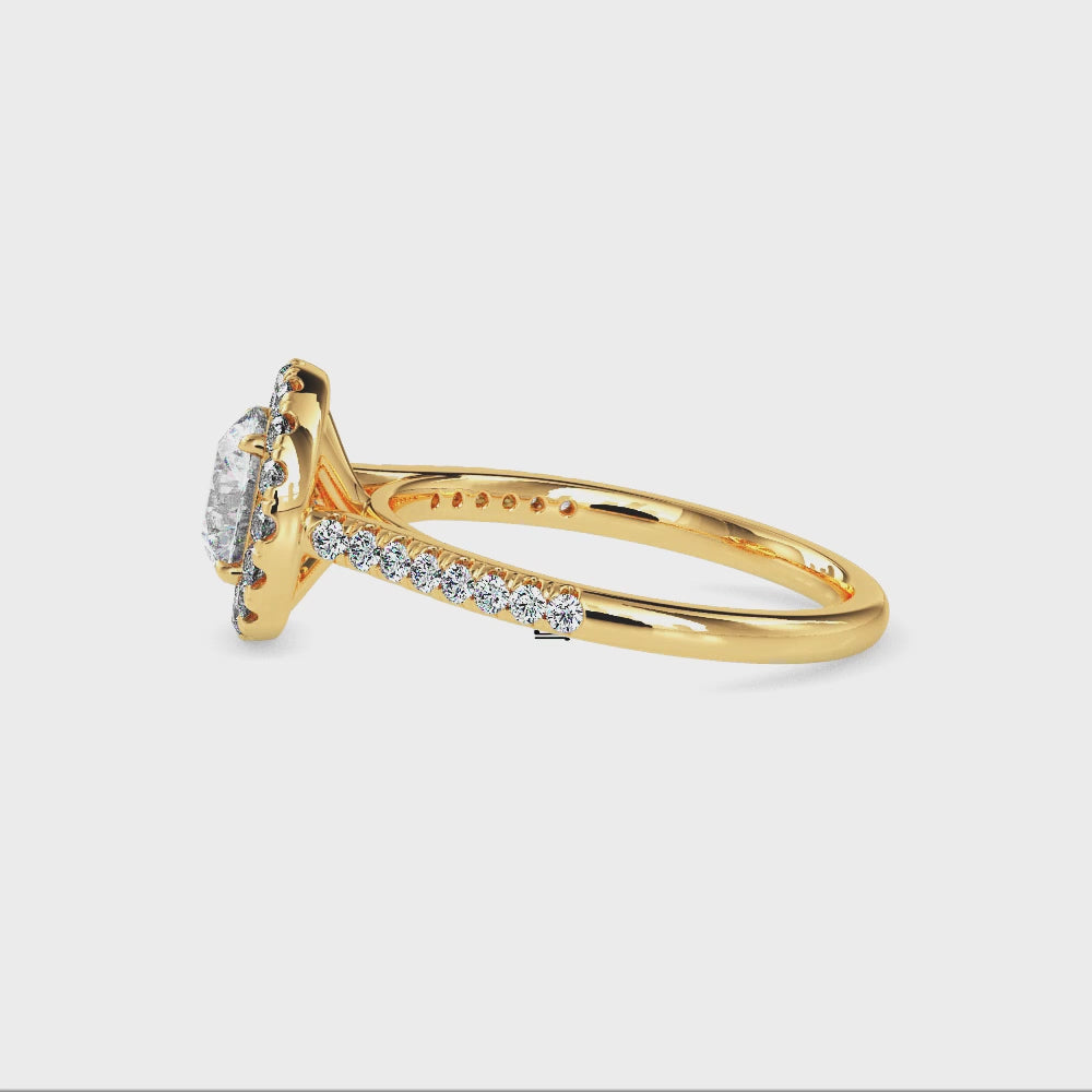 70-Pointer Solitaire Halo Diamond Shank 18K Yellow Gold Ring JL AU 19031Y-B