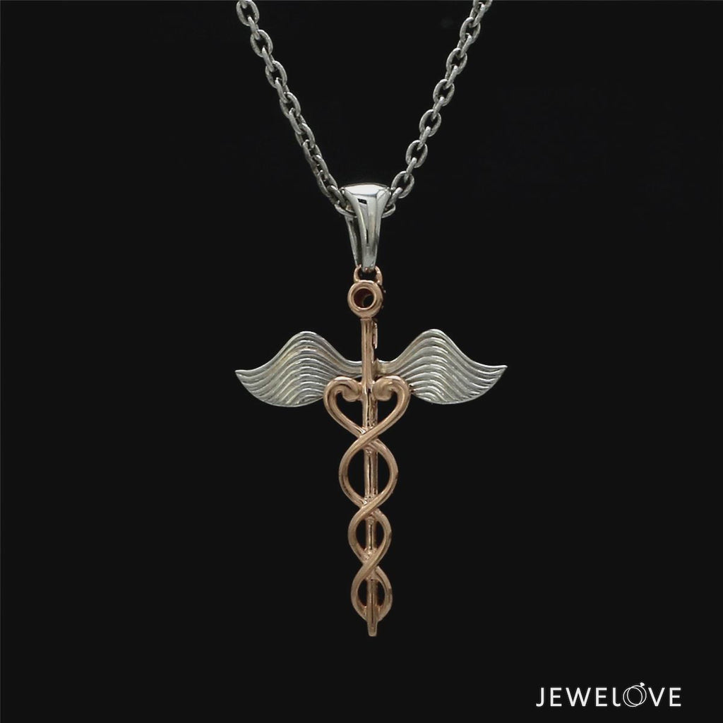 Platinum with Rose Gold Pendant for Healthcare Professionals, Doctors, Nurses etc. Caduceus symbol with a short staff entwined by two serpents, surmounted by wings.