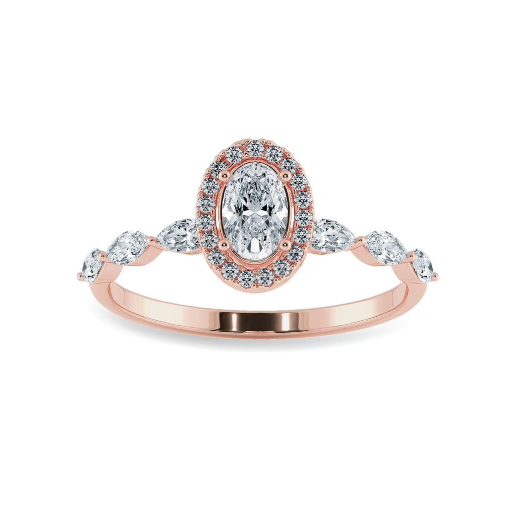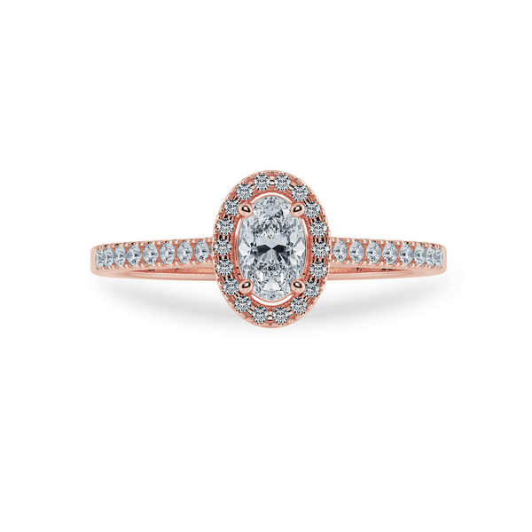 0.30 cts. Oval Cut Solitaire Halo Diamond Accents 18K Rose Gold Ring JL AU 2008R