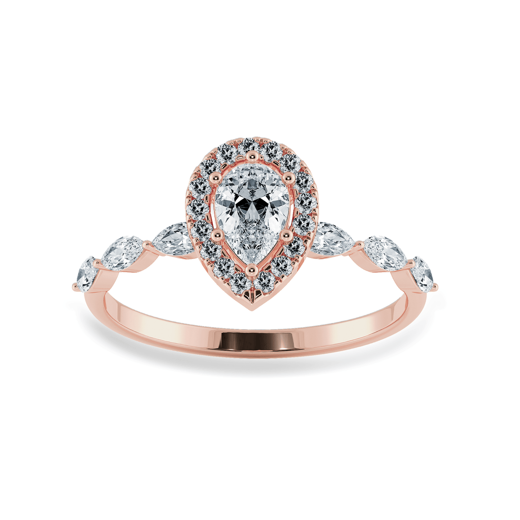 0.30cts. Pear Cut Solitaire Halo Diamond Accents 18K Rose Gold Ring JL AU 2009R