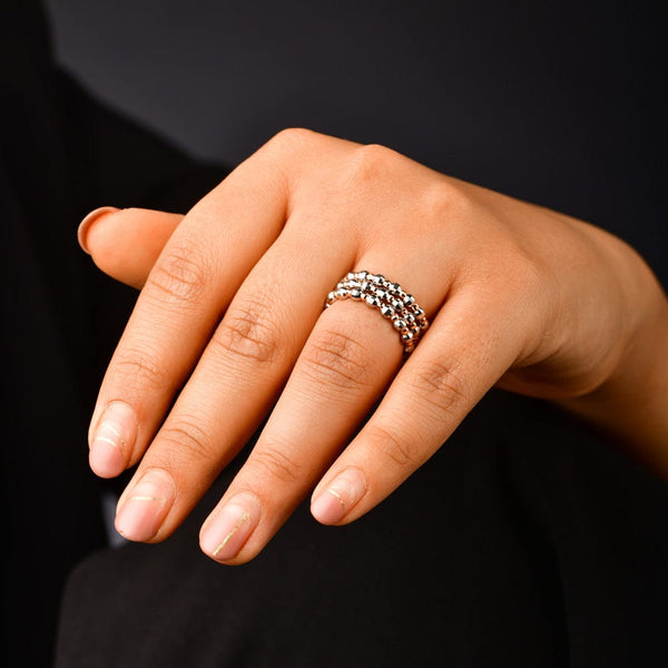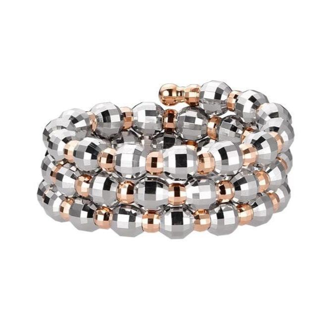 Japanese 2 Row Flexible Platinum Rose Gold Fusion Ring with Diamond Cutting JL PT 1021