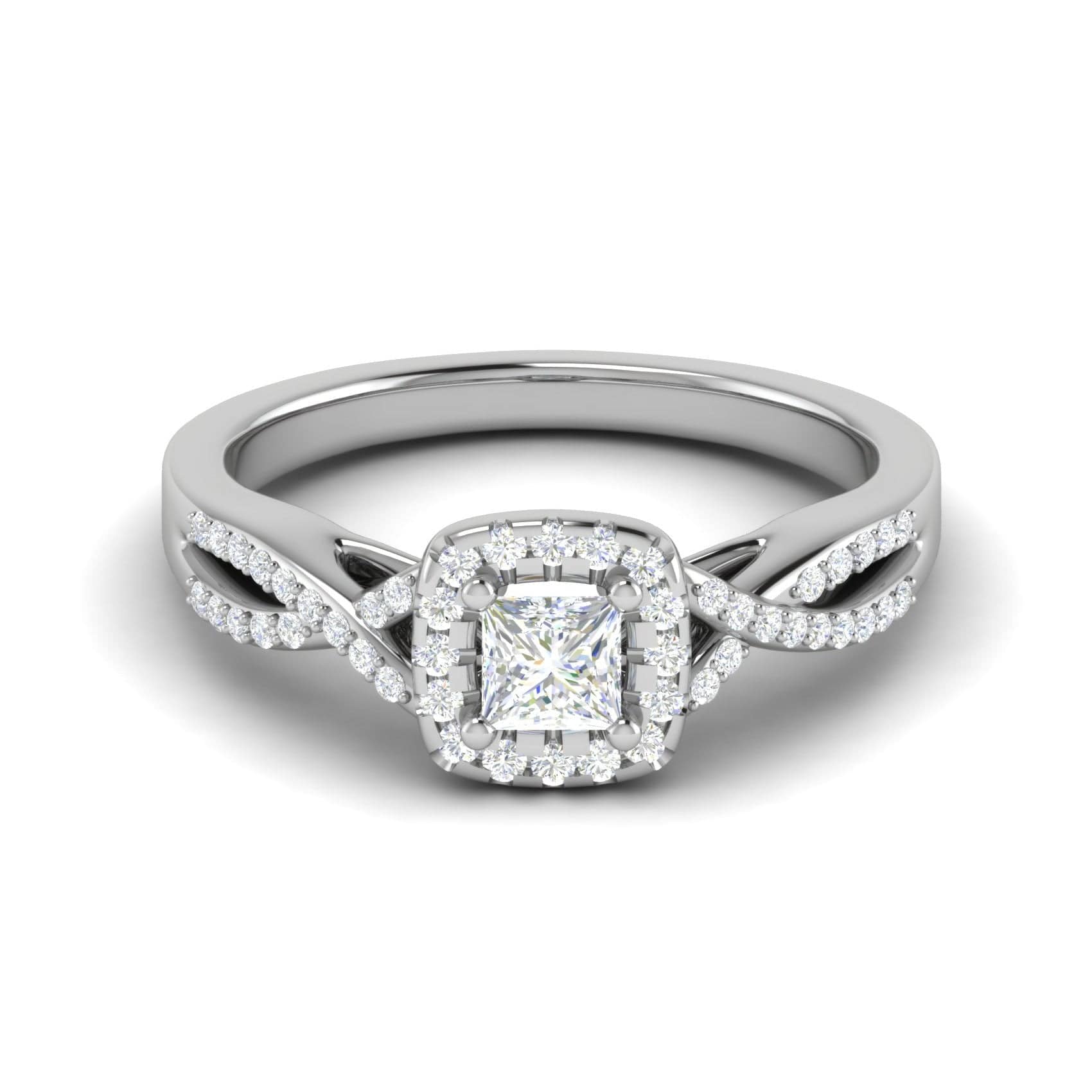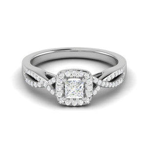 0.30 cts. Princess Cut Solitaire Halo Diamond Twisted Shank Platinum Ring JL PT RP AS 212