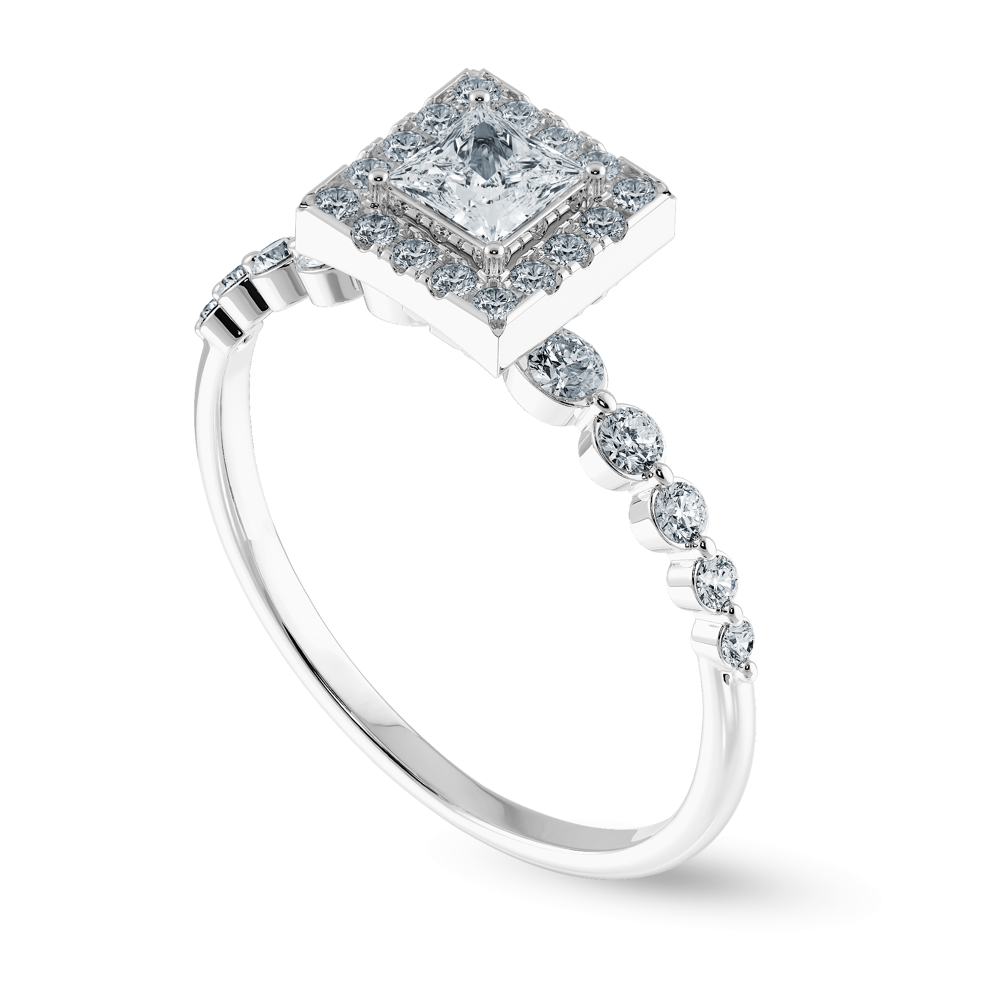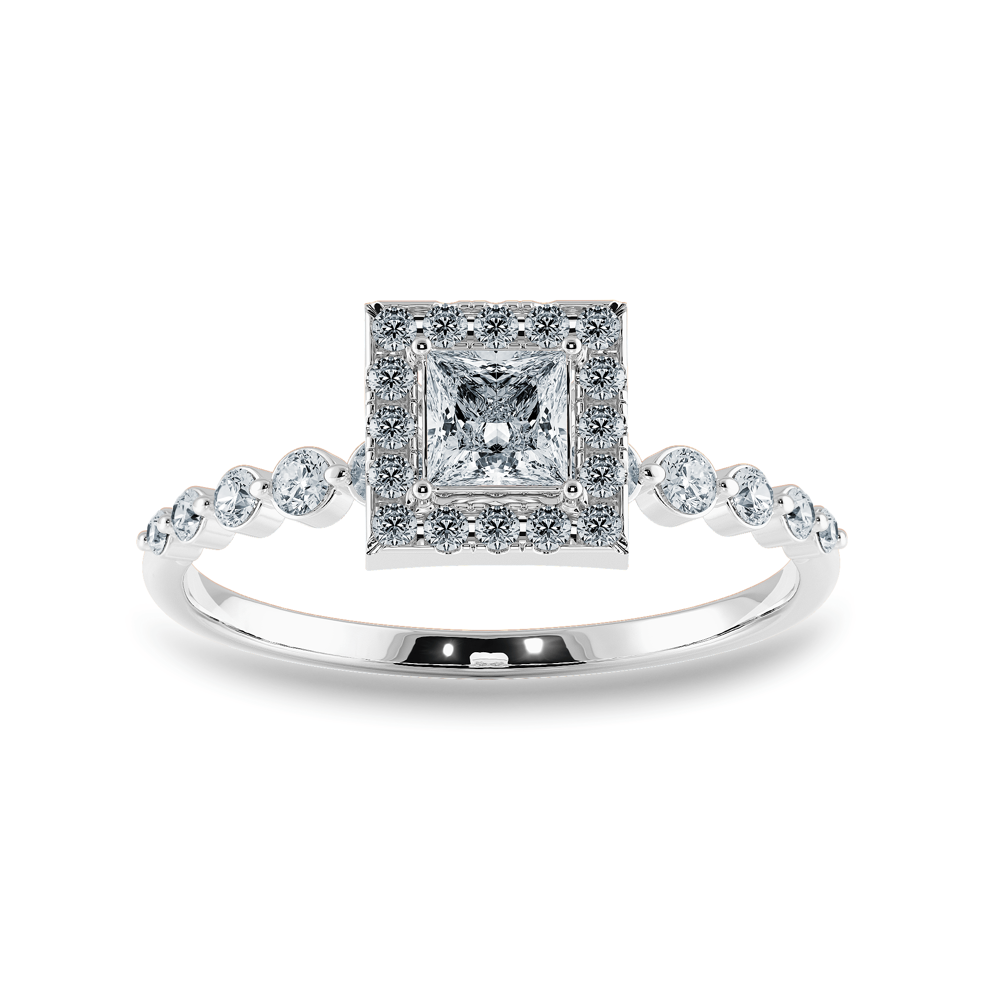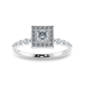 0.30 cts. Princess Cut Diamond Halo Diamond Shank Platinum Solitaire Engagement Ring JL PT RP RD 111
