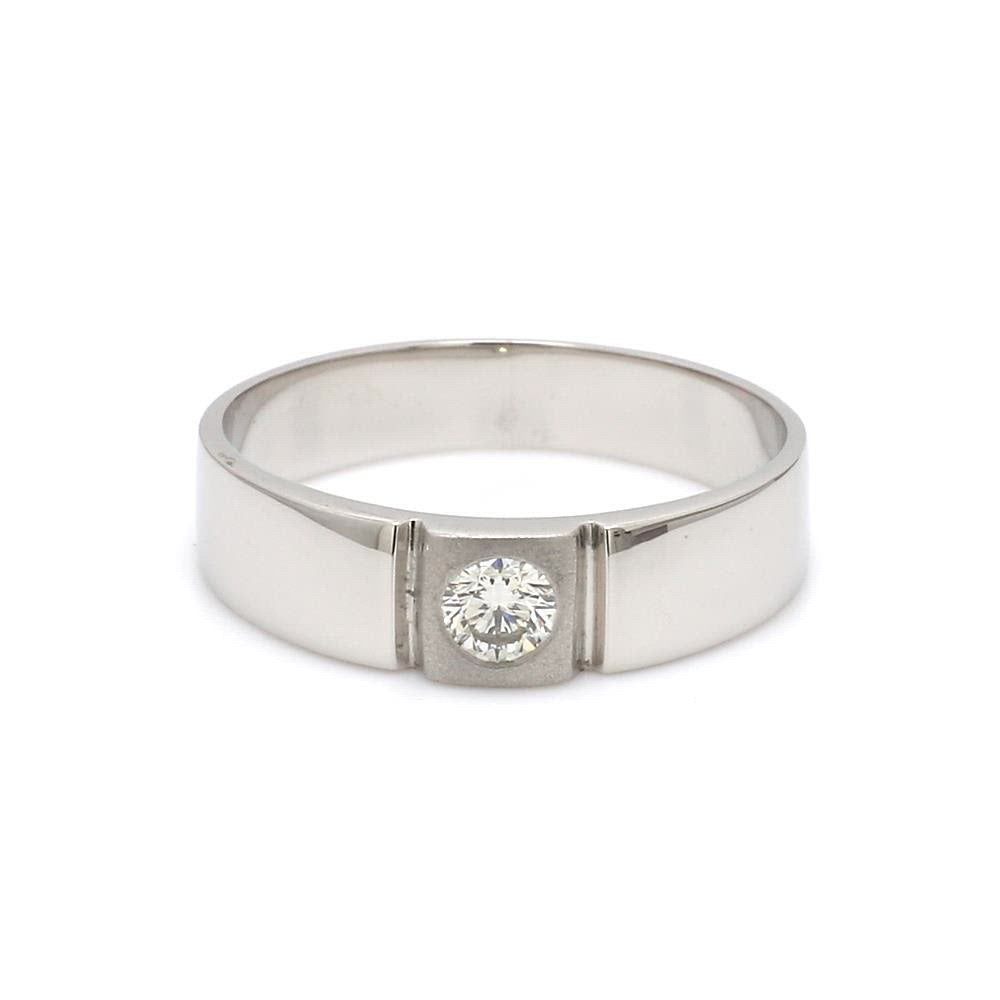 Customised ring. Platinum ring with major hi-polish & slight matte finish with a single diamond. Not eligible for order cancellation, exchange or refund.