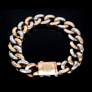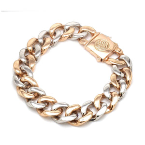 13.5mm Two-tone Platinum & Rose Gold Curb Bracelet for Men JL PTB 1174