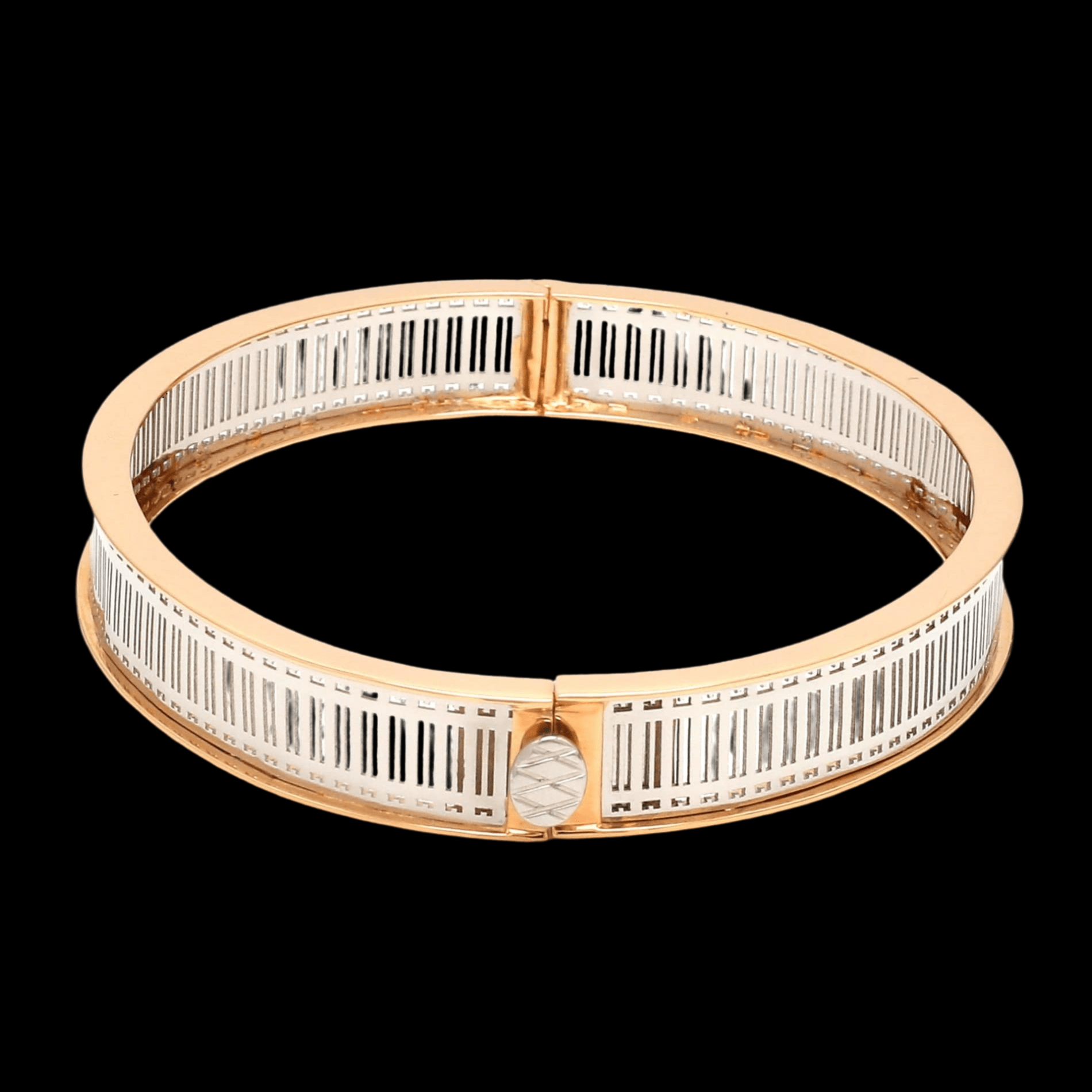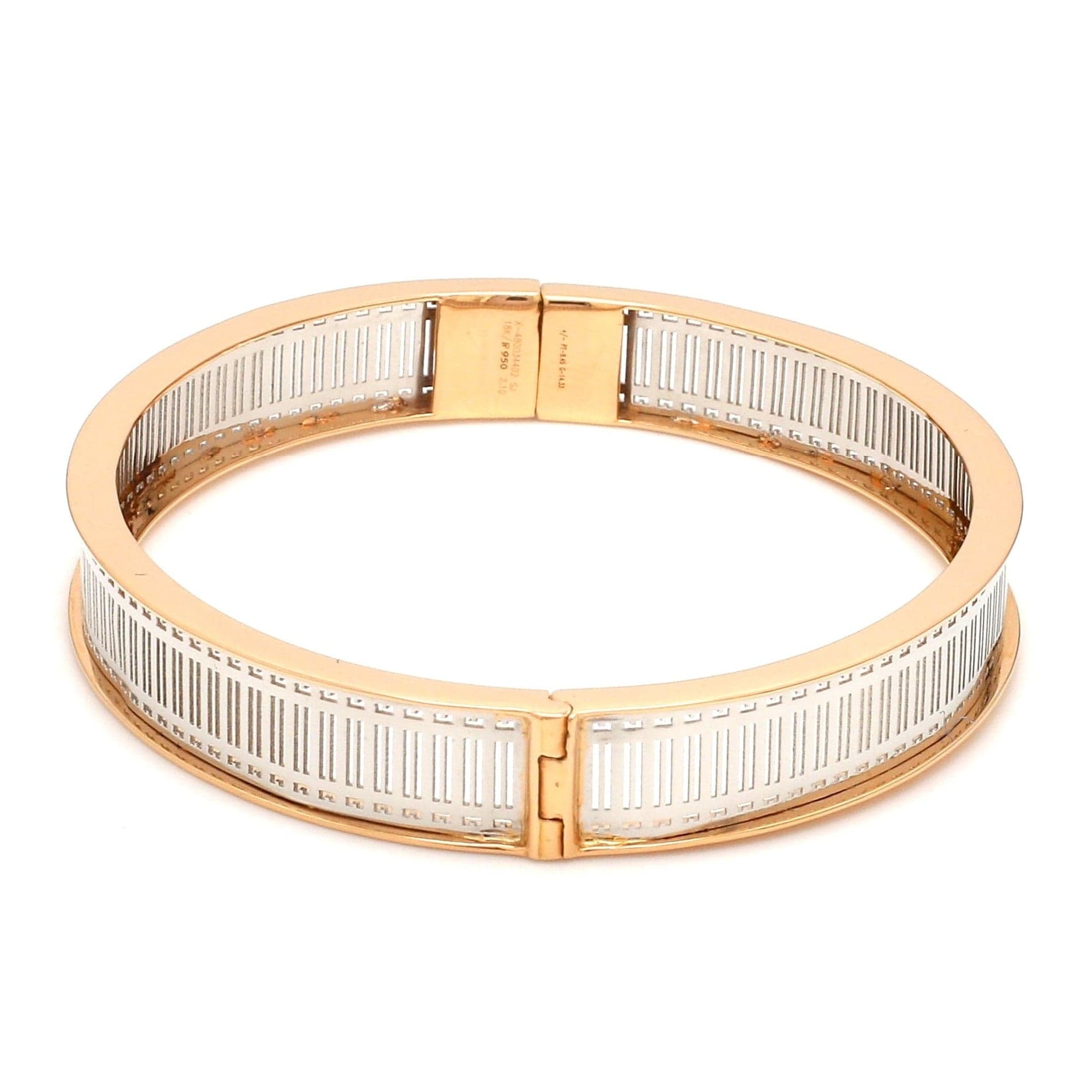 Crafted in Platinum & 18K Rose Gold. The bracelet is made in 95% pure platinum & 18K Rose Gold fusion and hallmarked with Pt 950 & 18K for platinum purity.