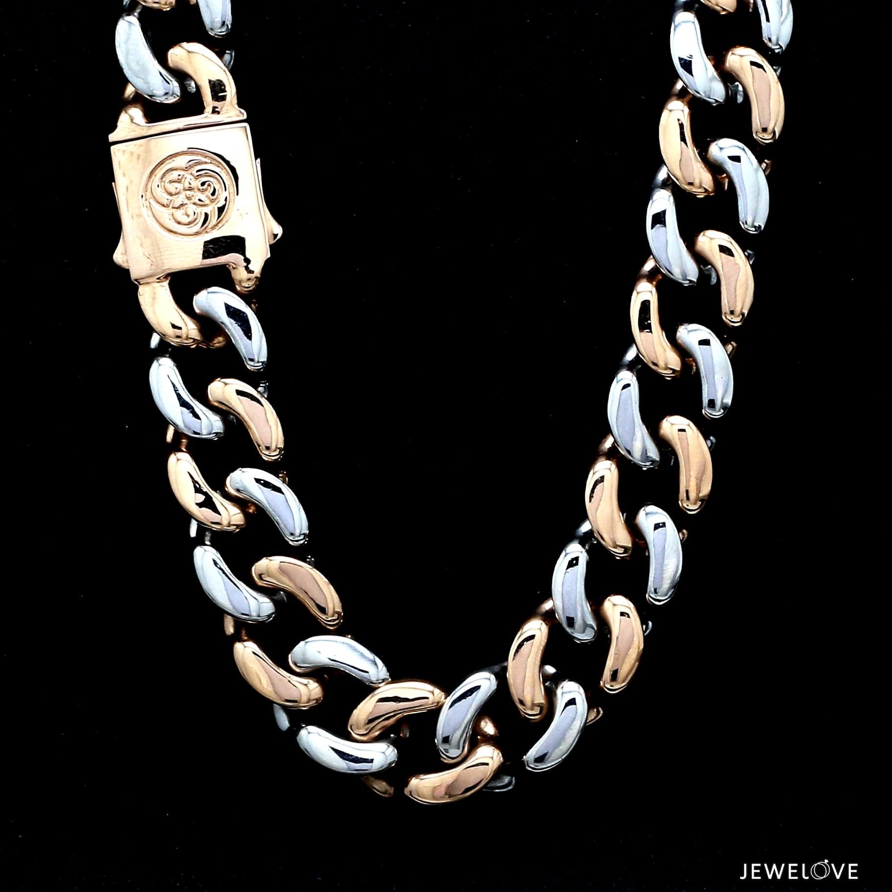 Crafted in Platinum & 18K Rose Gold. The Chain is made in 95% pure platinum & 18K Rose Gold fusion and hallmarked with Pt 950 & 18K for purity.