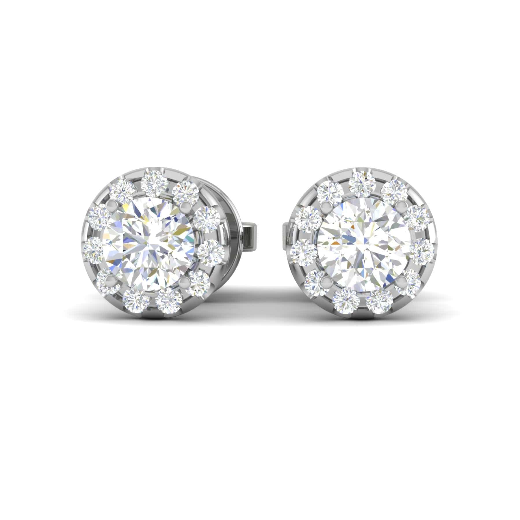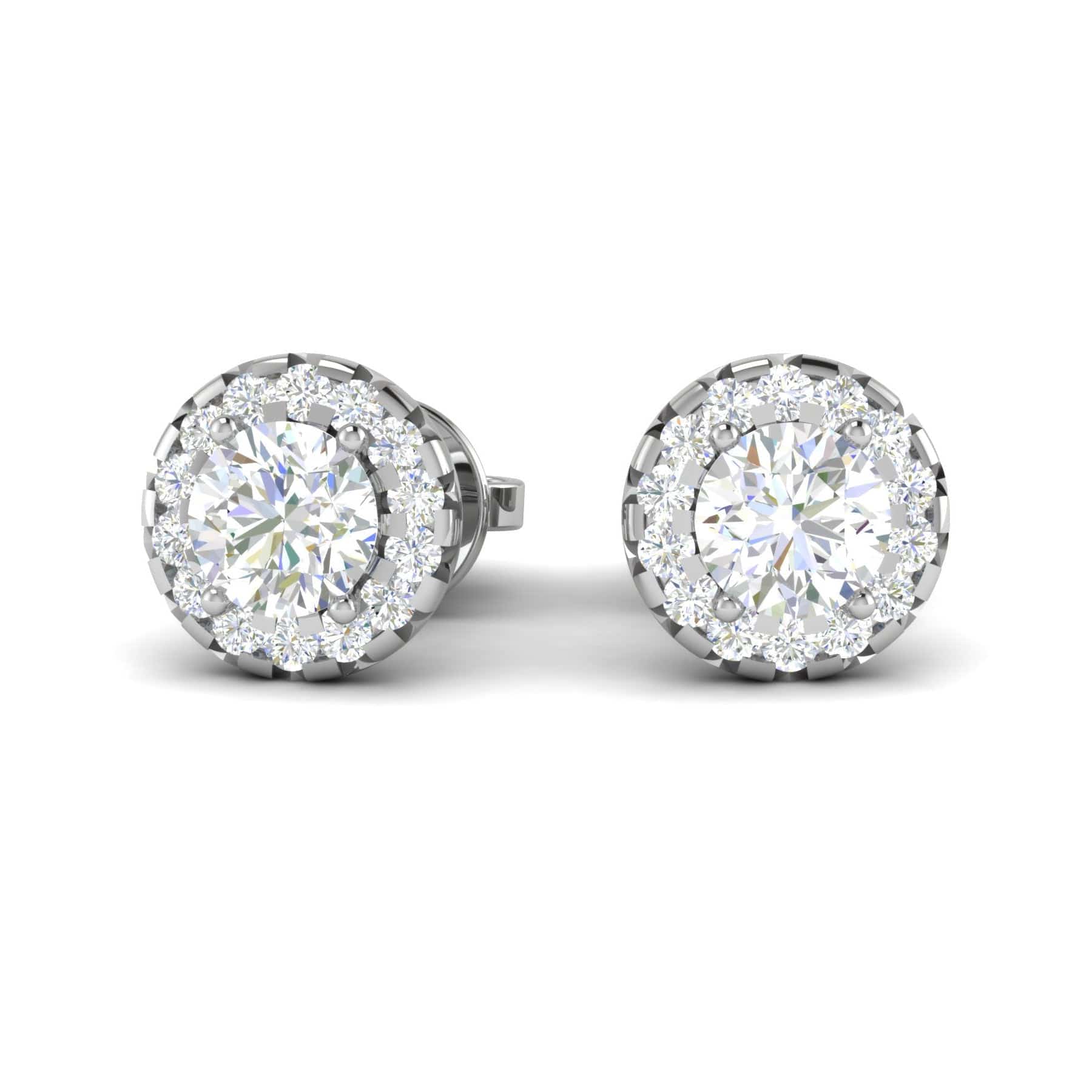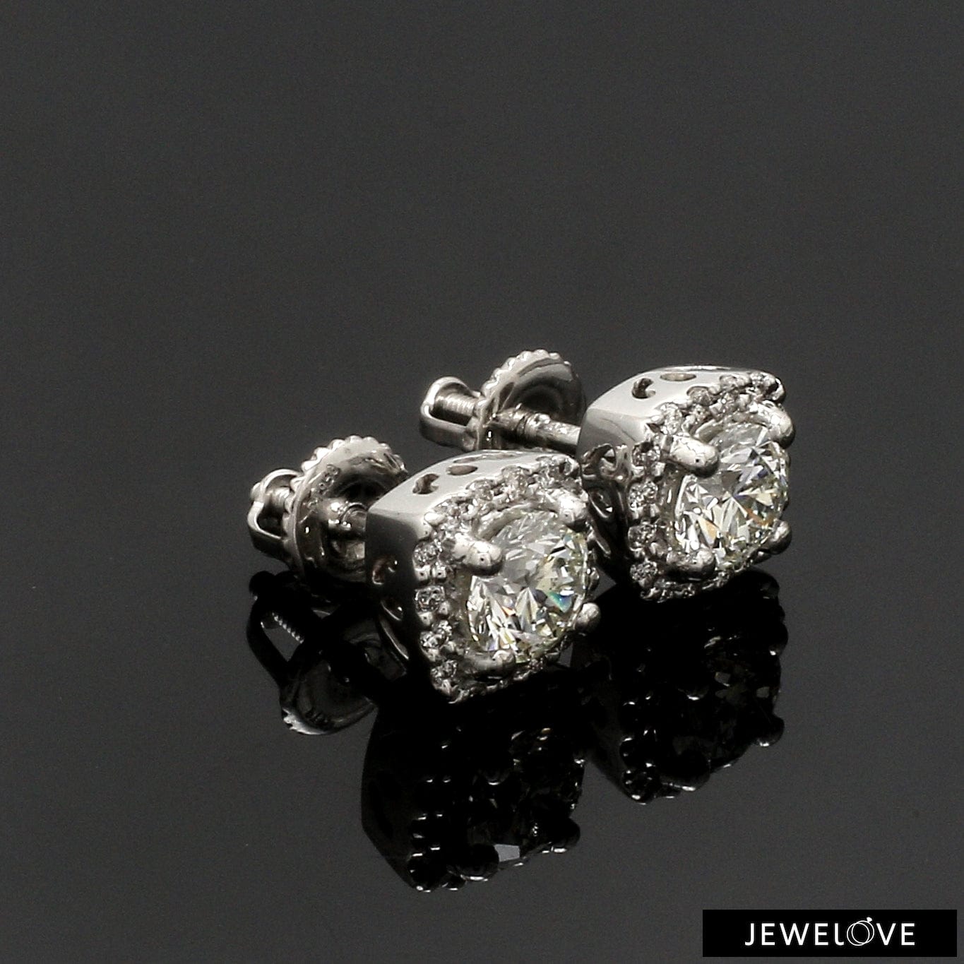Platinum Solitaire Halo Earrings JL PT E SE RD 111