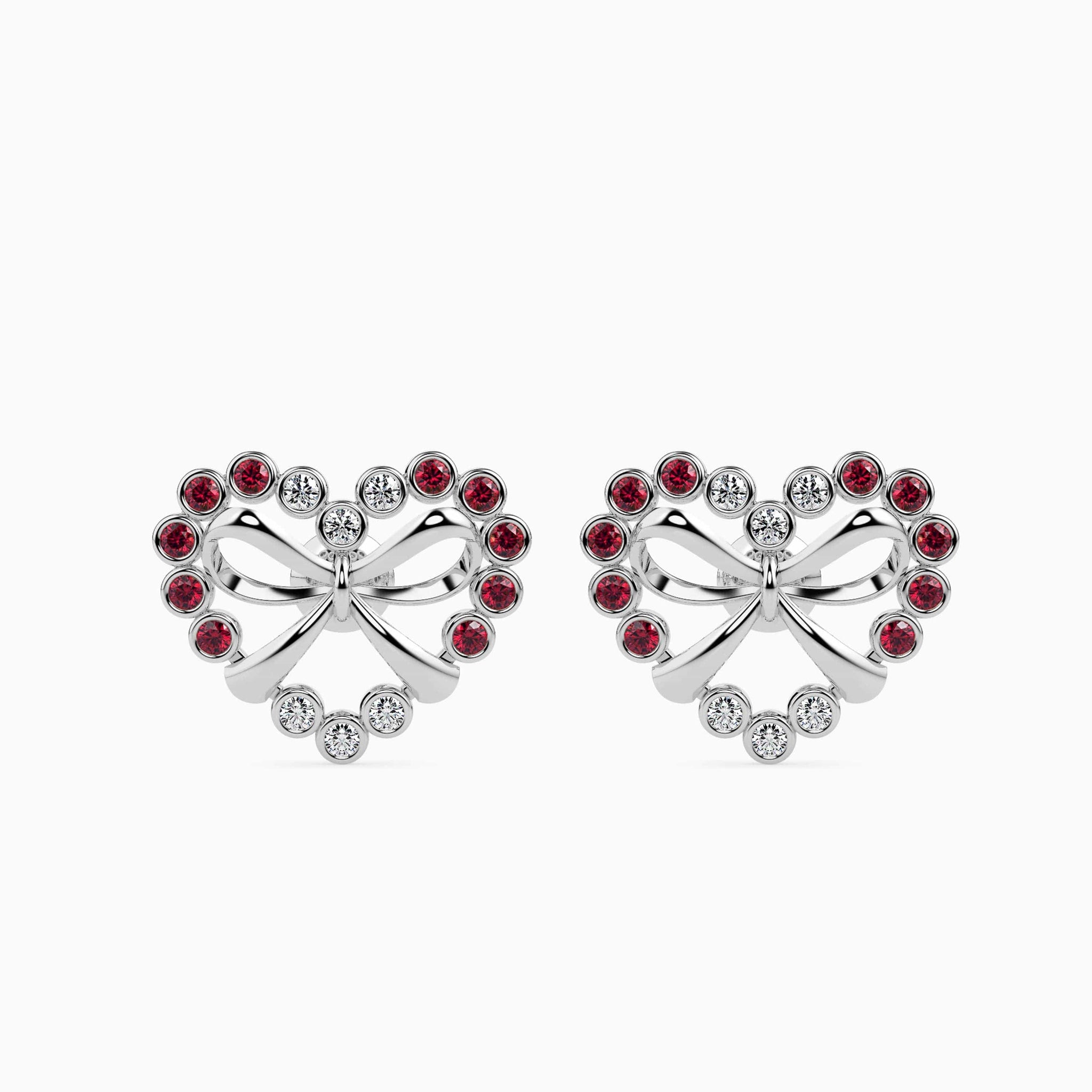 Platinum Ruby & Diamond Heart Earrings JL PT E 18026