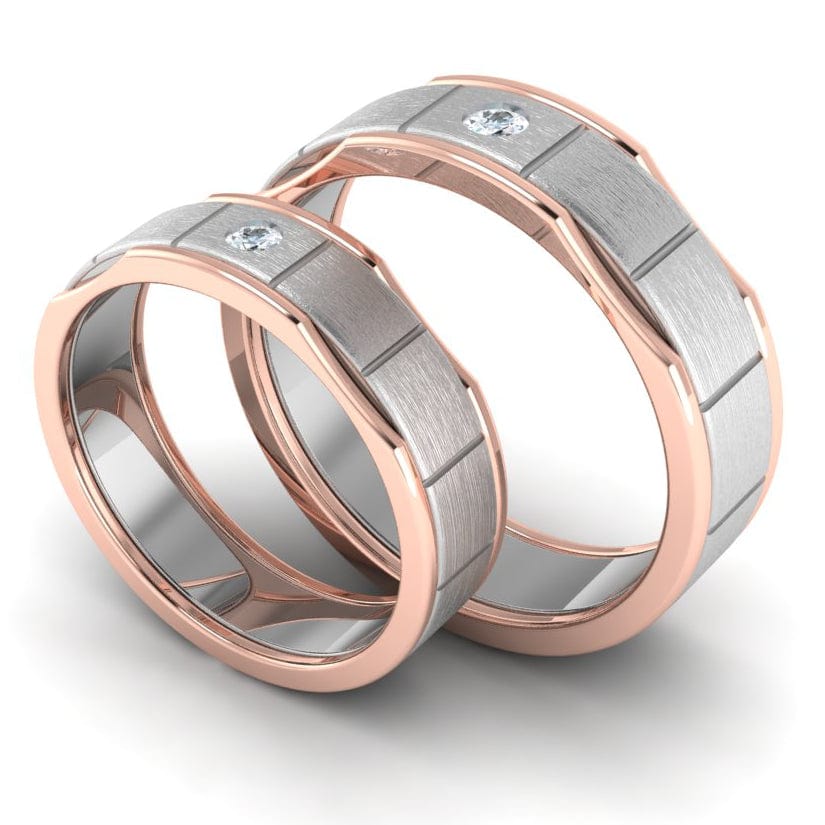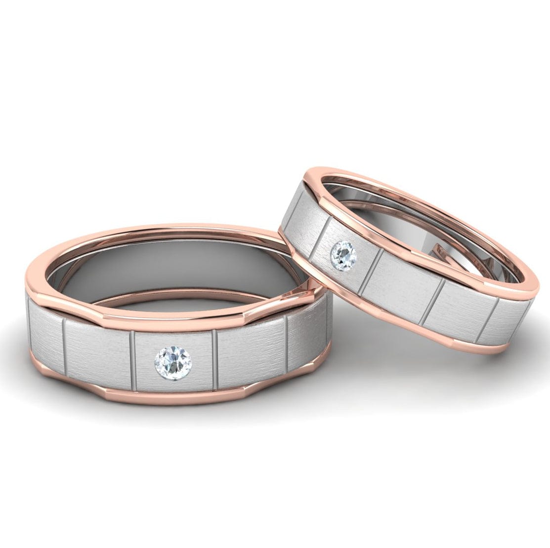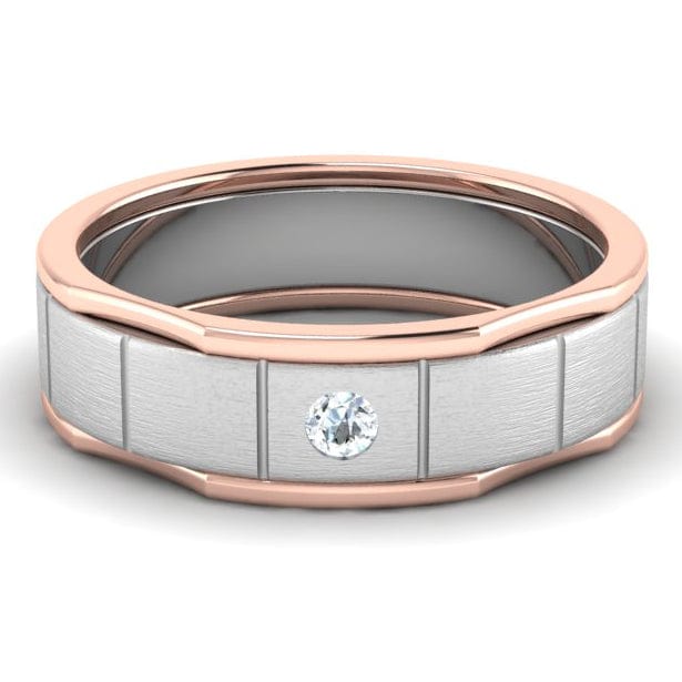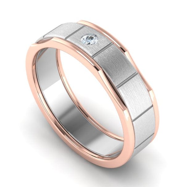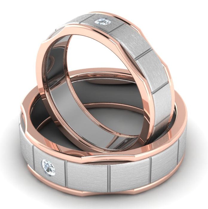 Unique Shape Platinum Love Bands with Single Diamond & Rose Gold Border JL PT 648 - Rose Gold