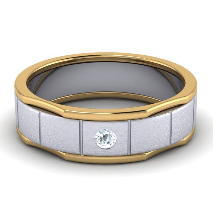 Unique Shape Platinum Love Bands with Single Diamond & Yellow Gold Border JL PT 648 - Yellow Gold