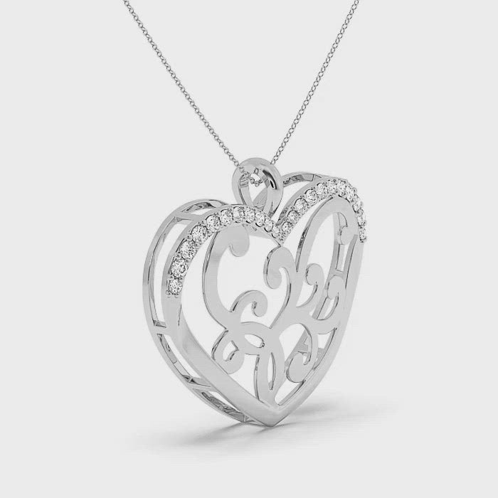 Platinum Heart Pendant with Diamond for Women.