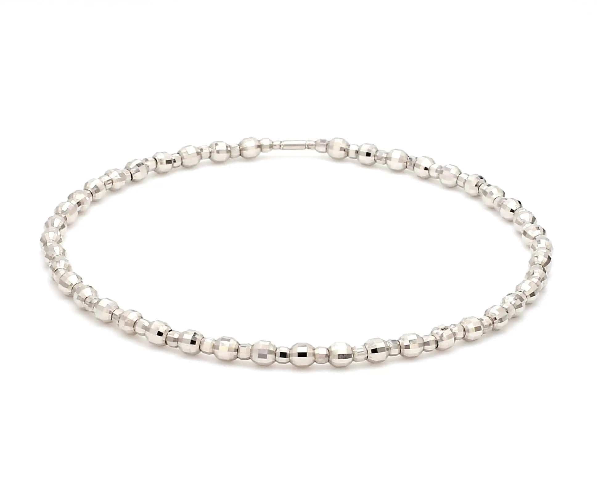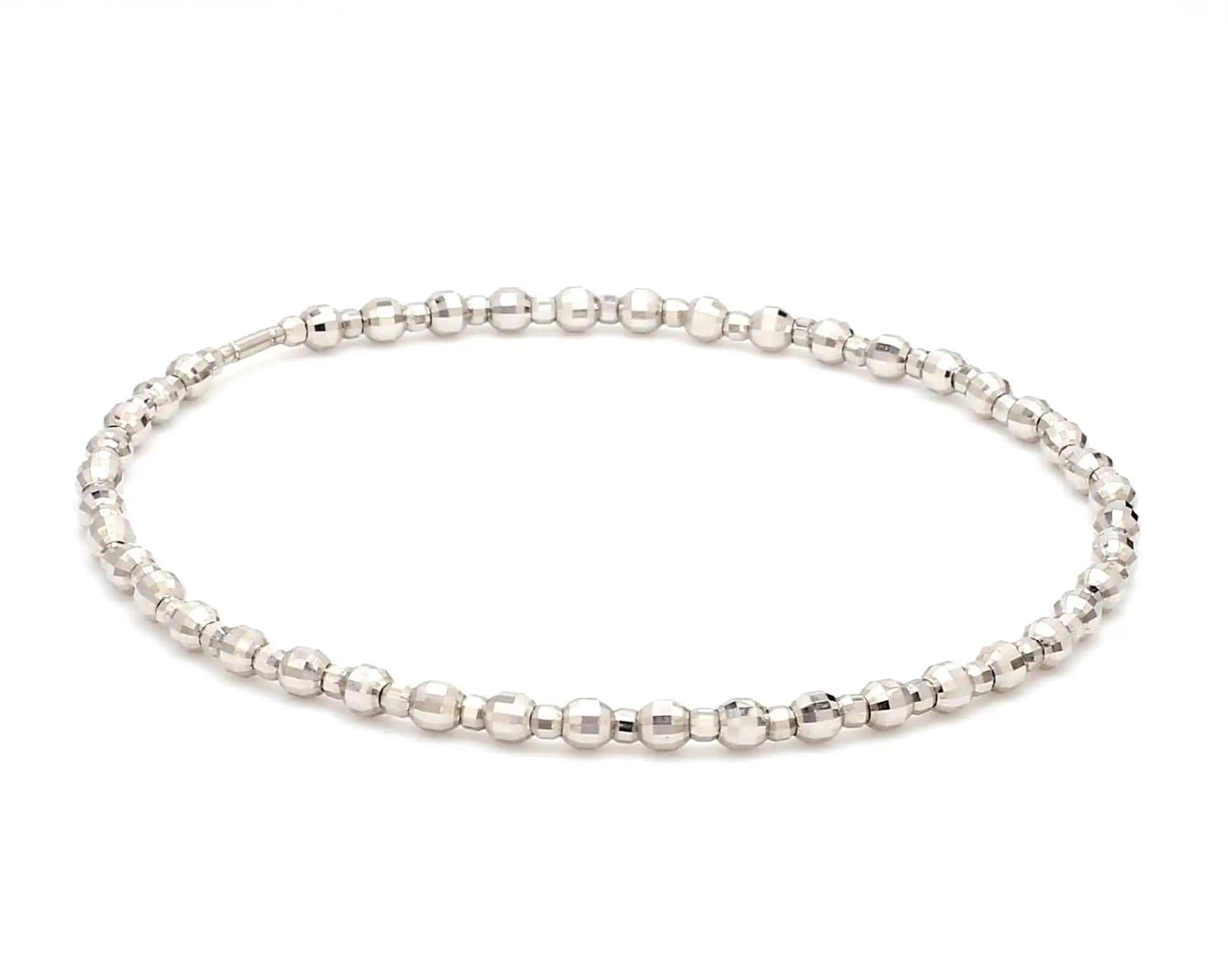 Platinum bangle made of interlinking diamond cut balls. The bangle is crafted in such a way that the platinum balls sparkle like diamonds!  Crafted in Platinum. The bangle is made in 95% pure platinum and hallmarked with Pt 950 for platinum purity.