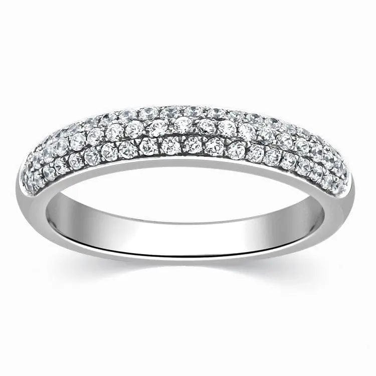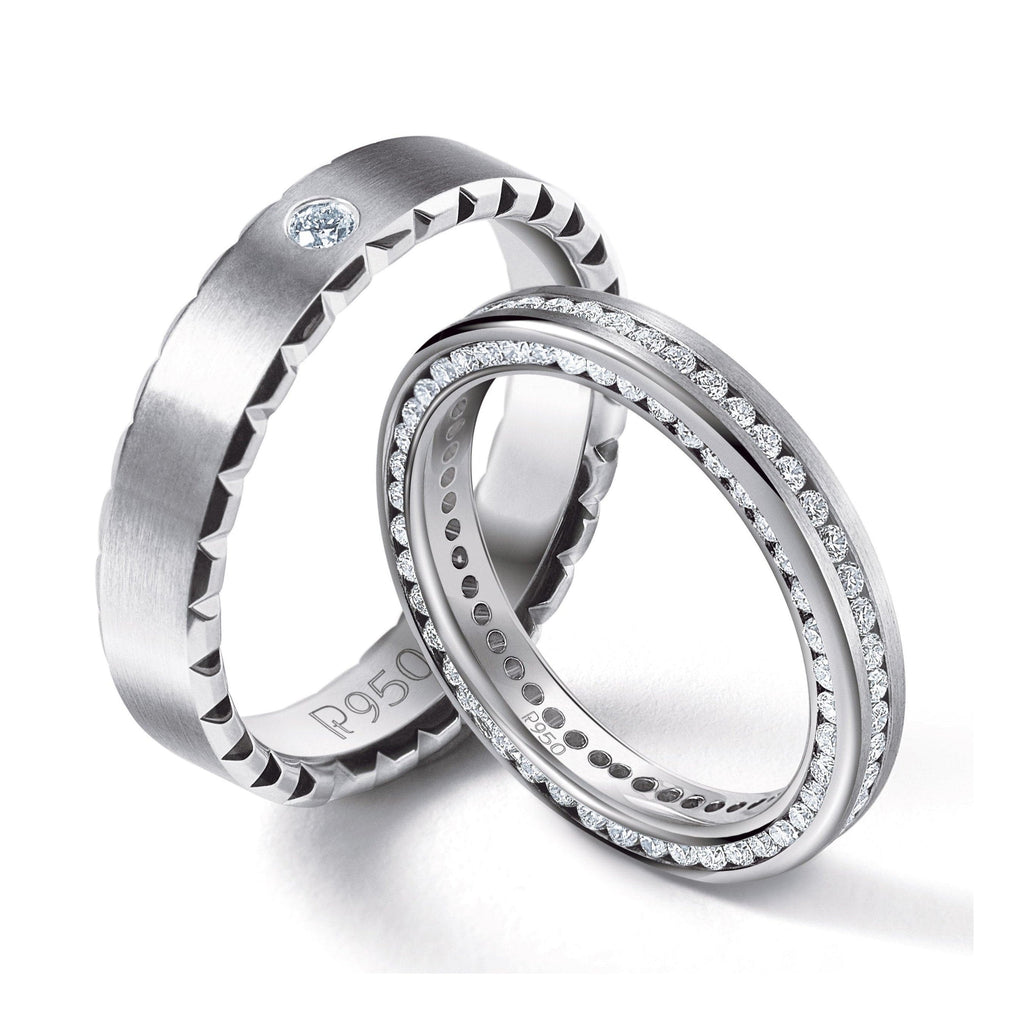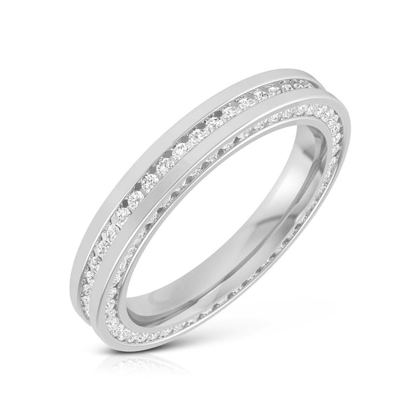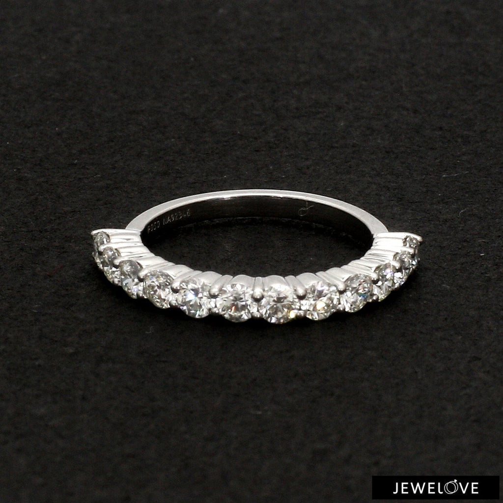Beautiful half & full eternity rings with diamonds set in straight lines across platinum bands. Epitome of Elegance. Perfect Eternity Bands for Women. Crafted in 95% pure platinum. Hallmarked for Pt 950. Certified by PGI. Free Delivery in India. 30-Days 100% Money Back Guarantee.